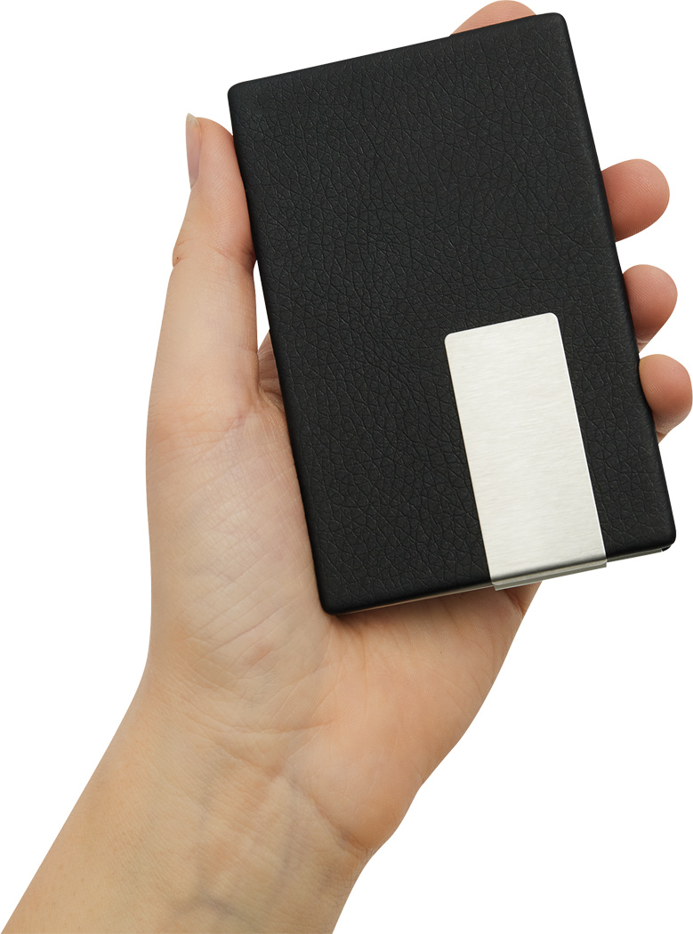 Elegantes Visitenkartenetui COOL CARDS: mit Edelstahl-Plättchen zur Werbeanbringung, in Leder-Optik