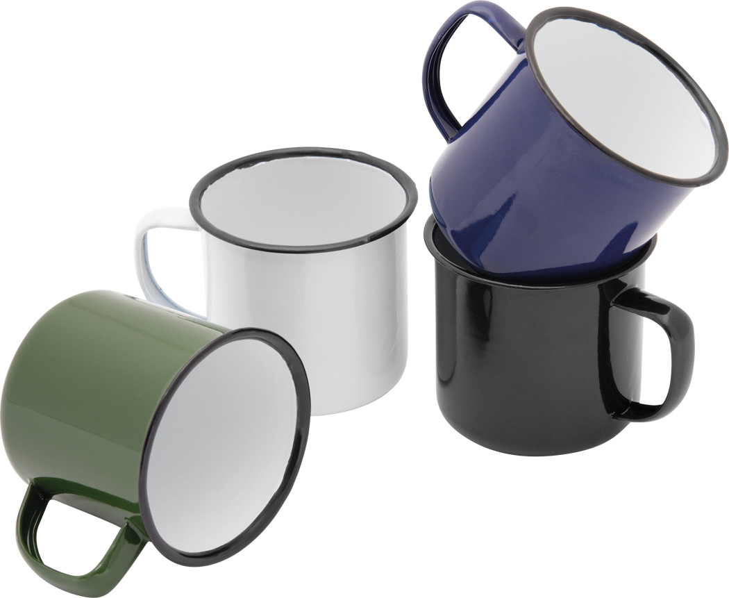 Emaille Becher RETRO CUP als Werbegeschenk für Geschäftsanlässe.