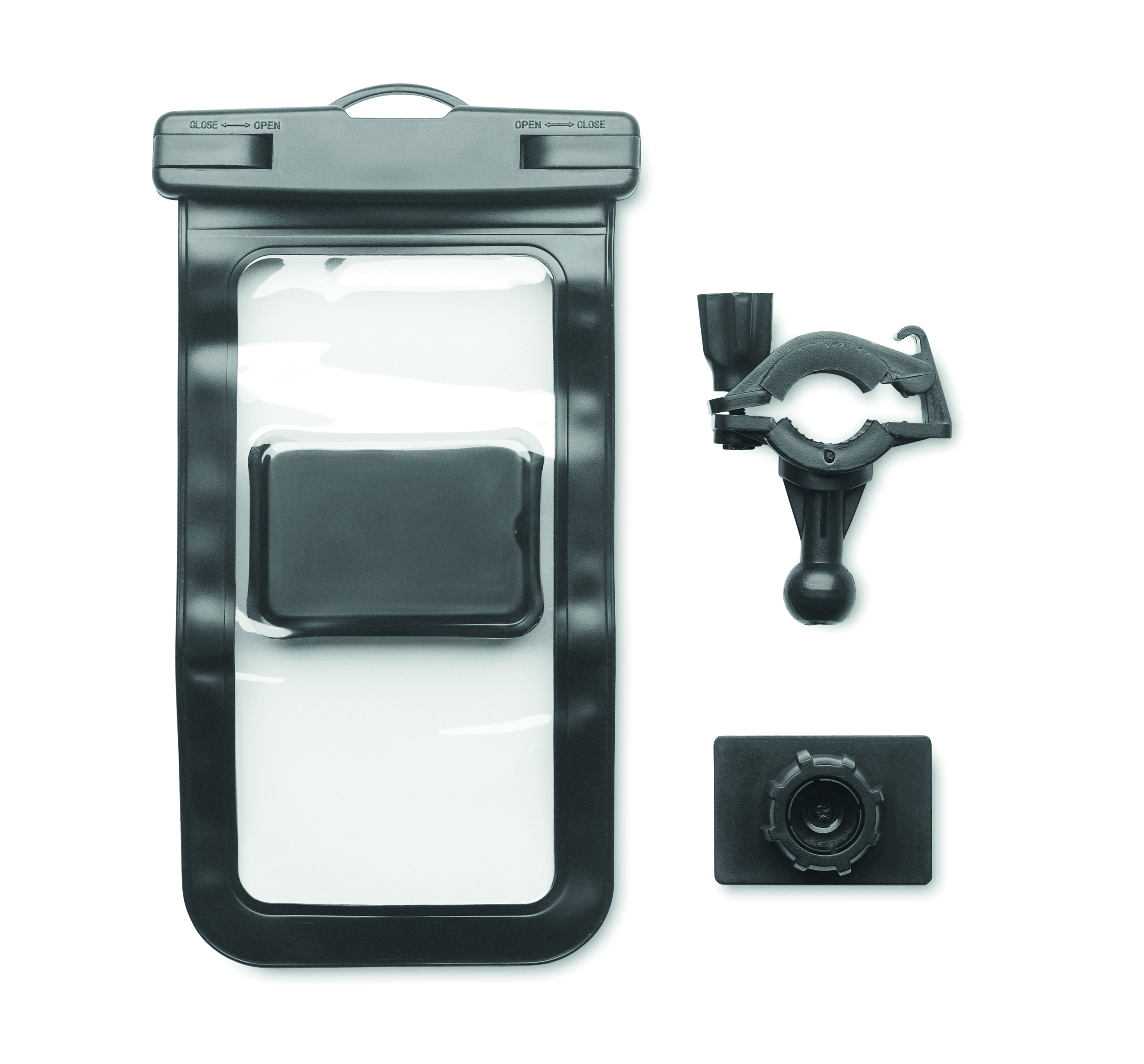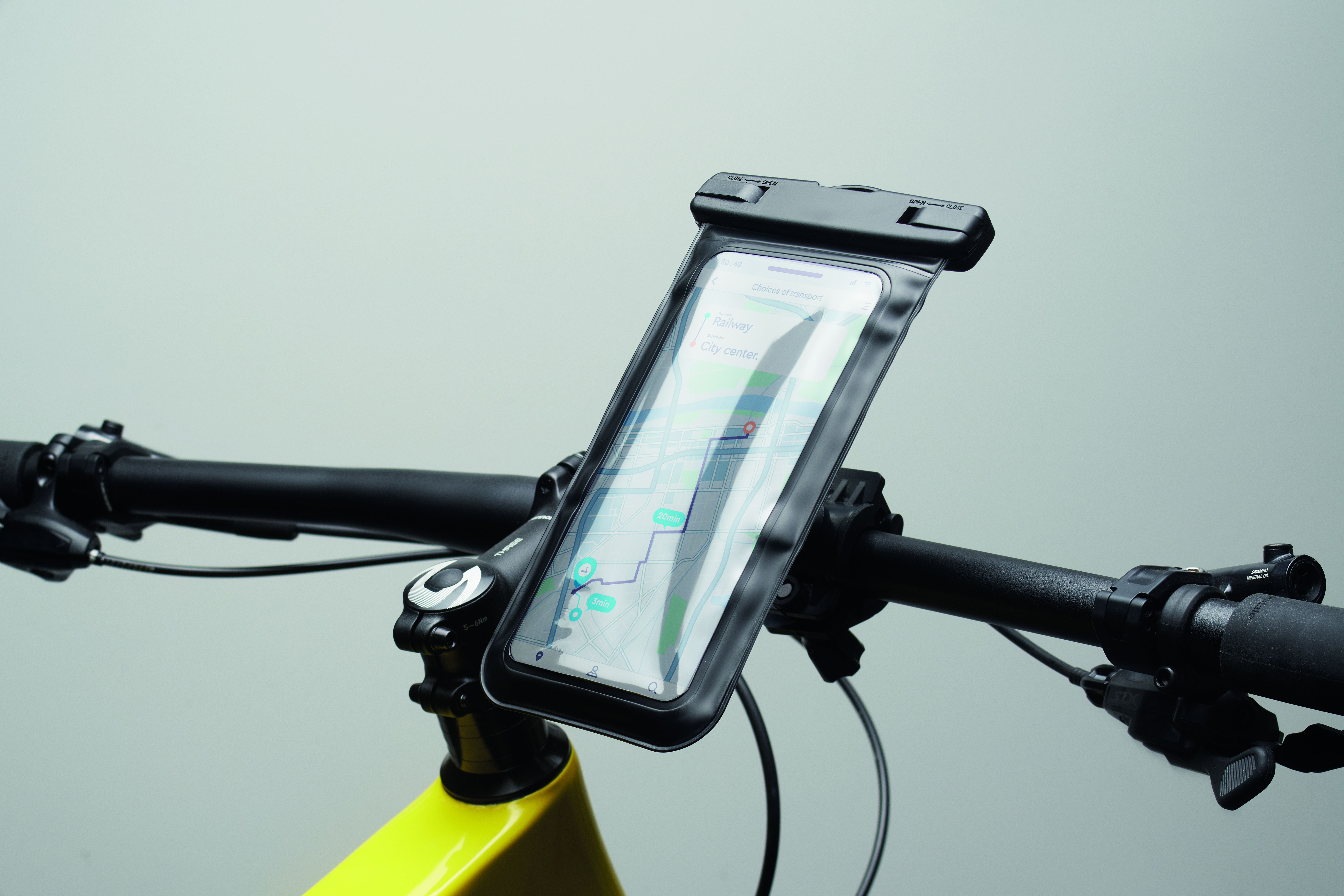 Fahrrad-Smartphone-Halter mit wasserdichter Hülle. Um 360° drehbar. Wasserdicht nach IPX 6. Bildschirmdiagonale: 6,7''. PVC.