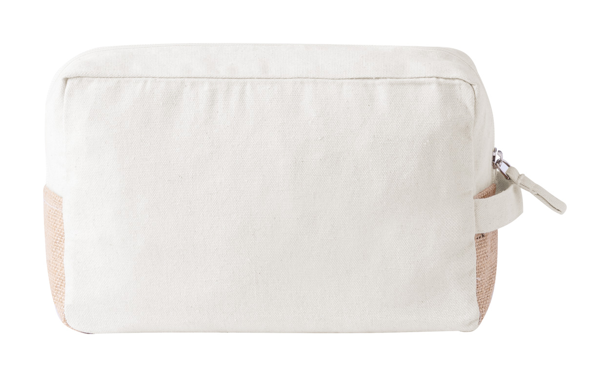 Kosmetiktasche aus Fairtrade-Baumwolle und laminierter Jute mit Reißverschluss und Fairtrade-Label. Material: 100 % Fairtrade-Baumwolle, 180 g/m².