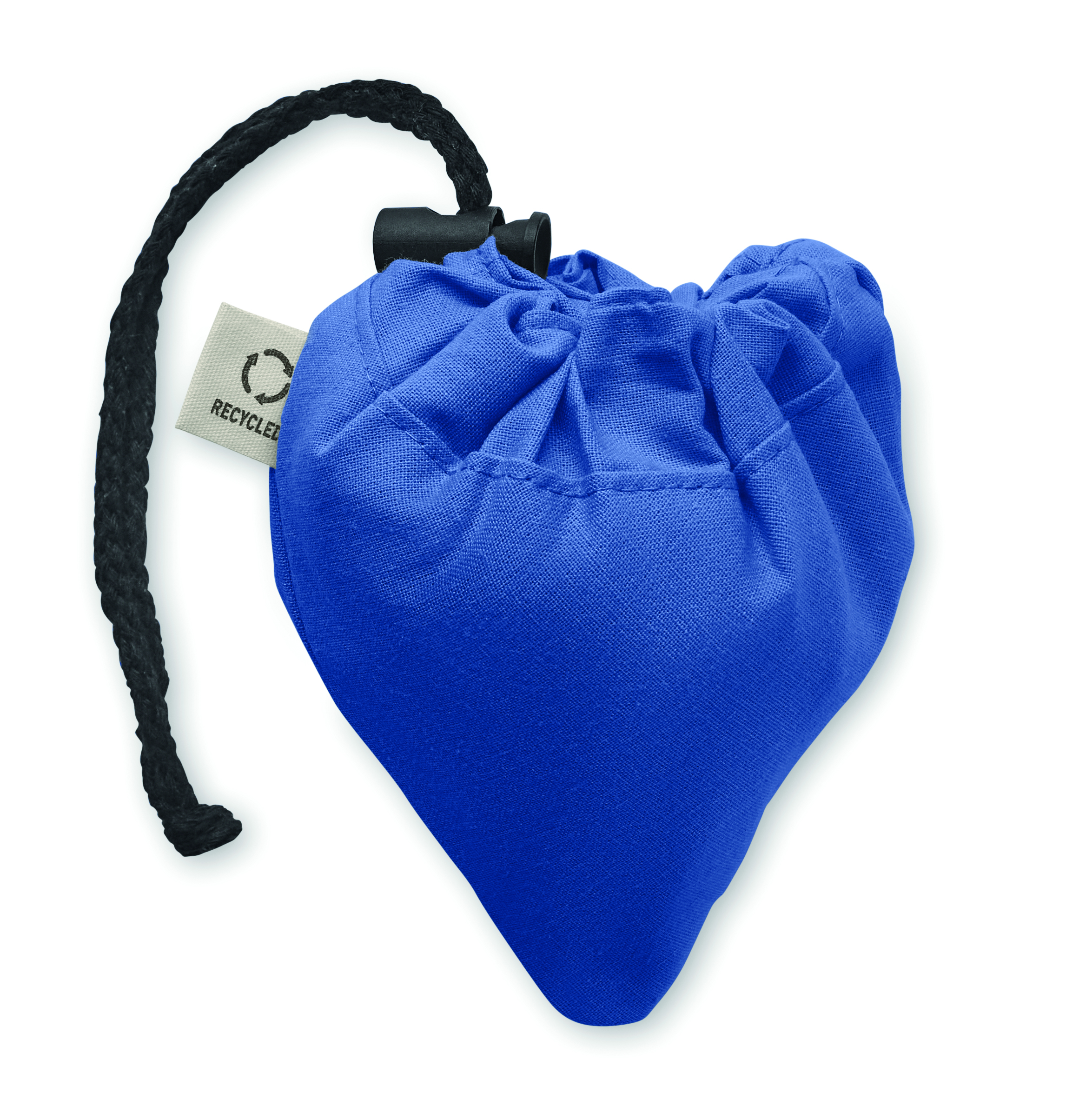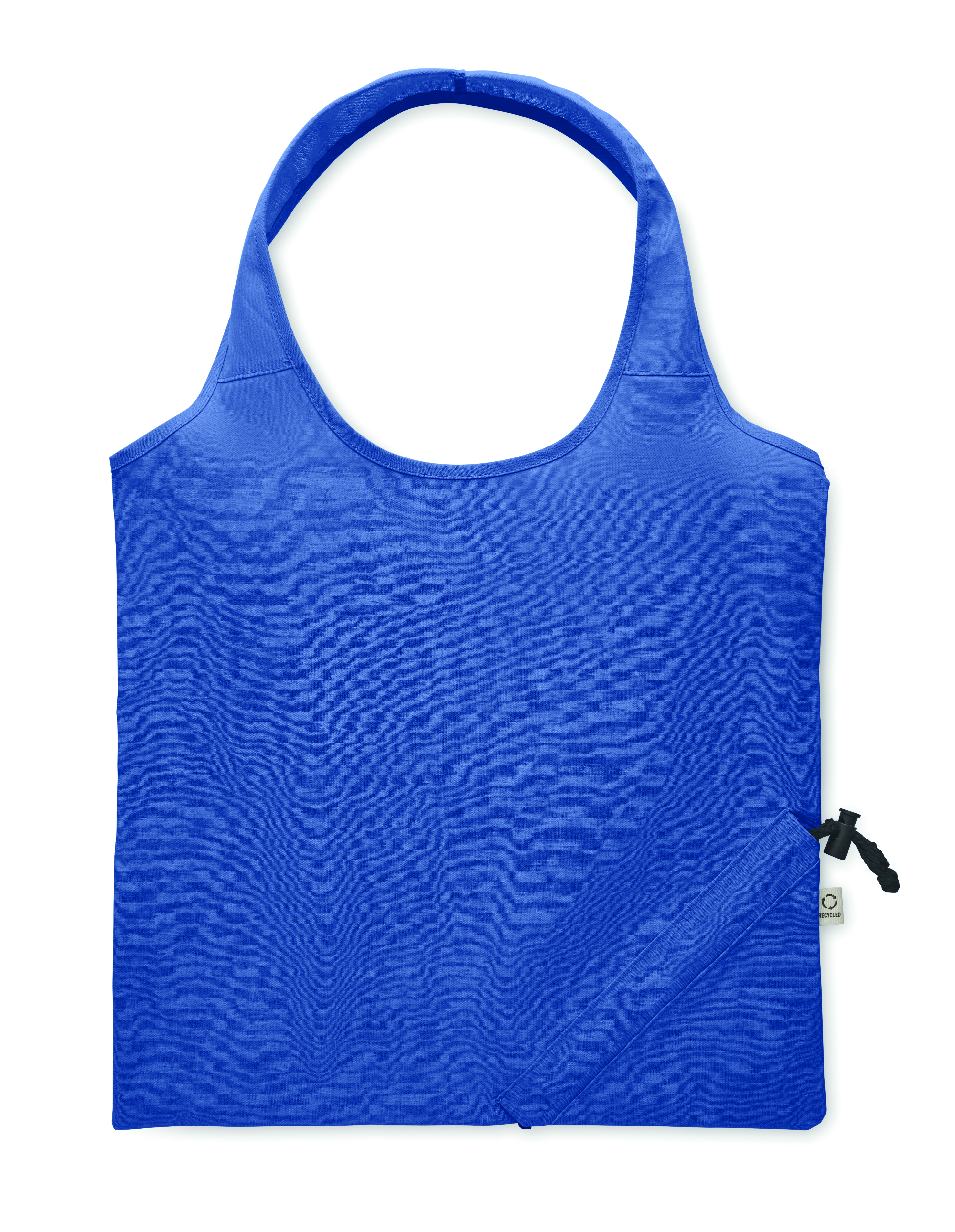Faltbare Einkaufstasche aus recycelter Pre-Consumer-Baumwolle (70% recycelte Baumwolle und 30% RPET). 140 g / m². Artikel kann nach dem Bedrucken schrumpfen.