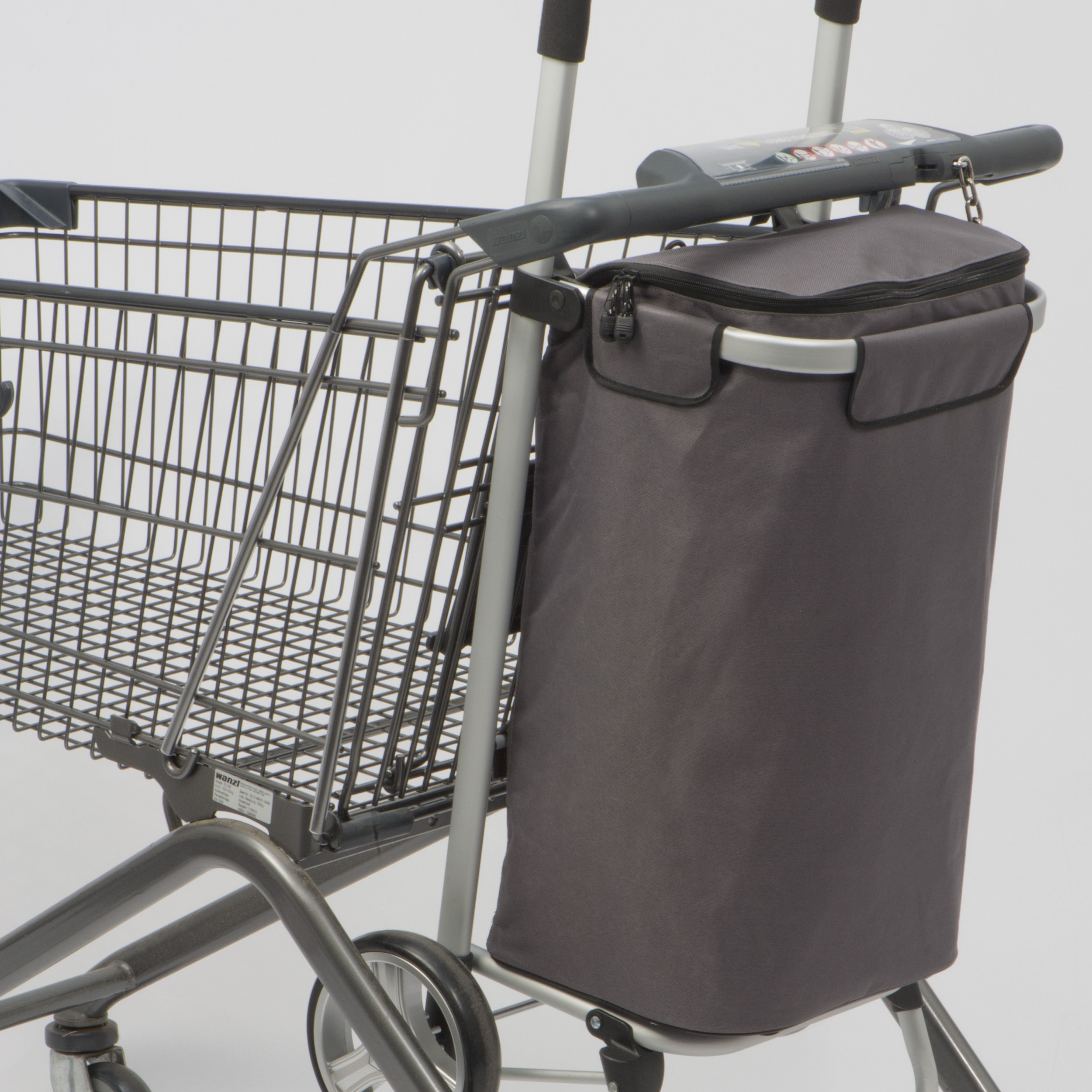 Faltbarer Einkaufstrolley aus Polyester mit Aluminiumgestänge, integriertem Kühlfach und Haken, um am Einkaufswagen befestigt werden zu können, einer Tragfähigkeit von 25kg und einem Fassungsvermögen von 30 Litern. Ihre Werbung wird auf den Deckel gedruckt.