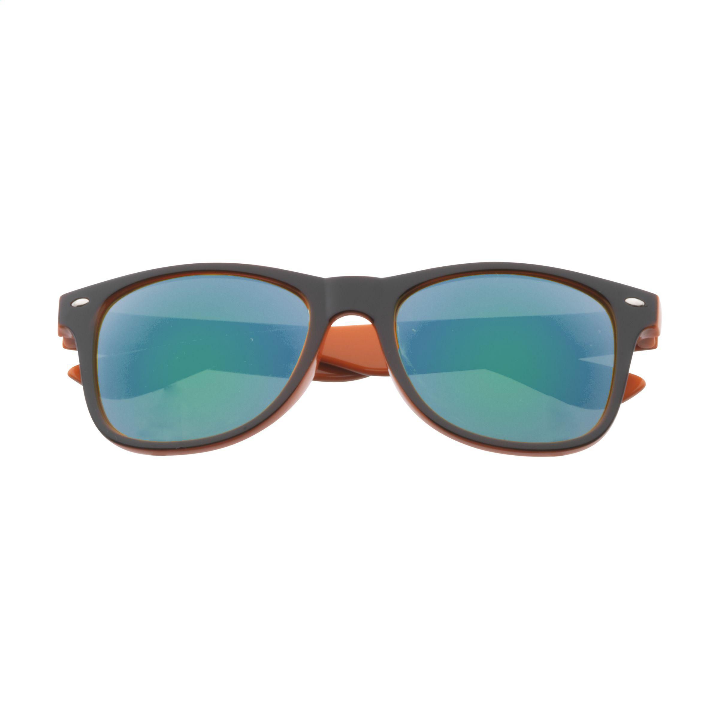 Auffallende Sonnenbrille mit verspiegelten Gläsern. Das Gestell vereint zwei unterschiedliche Farben. Die Farbe der Brillengläser passt perfekt zur Gestellfarbe. Mit UV 400 Schutz (nach europäischen Standards).