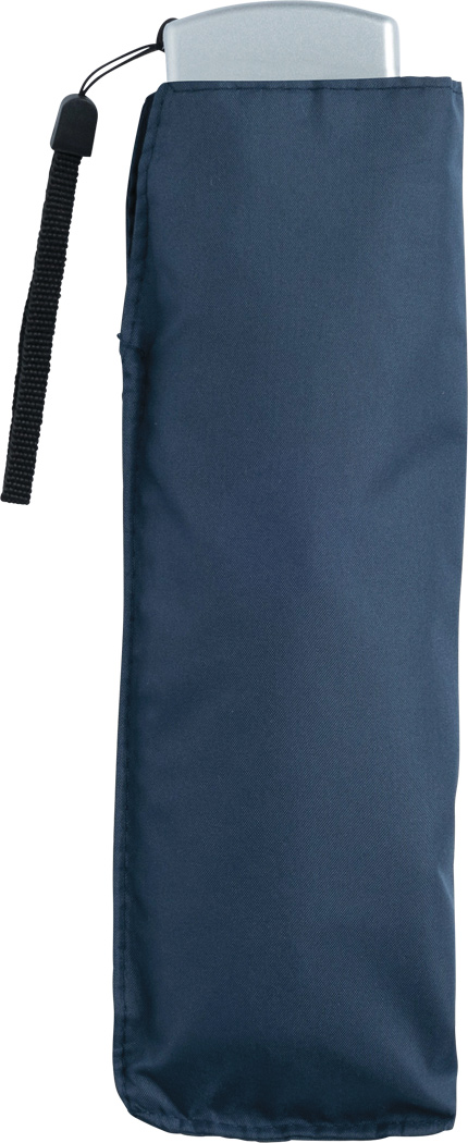 Super flacher Mini-Taschenschirm FLAT in farblich abgestimmtem Futteral: 164g-leichtes Windproof-Gestell, 3-teiliger Aluminiumstock, mit Aluminium- / Fiberglasspeichen und Metalltips, Kunststoffgriff mit Handschlaufe, Polyester-Pongee-Bespannung, Schließband mit Klettverschluss