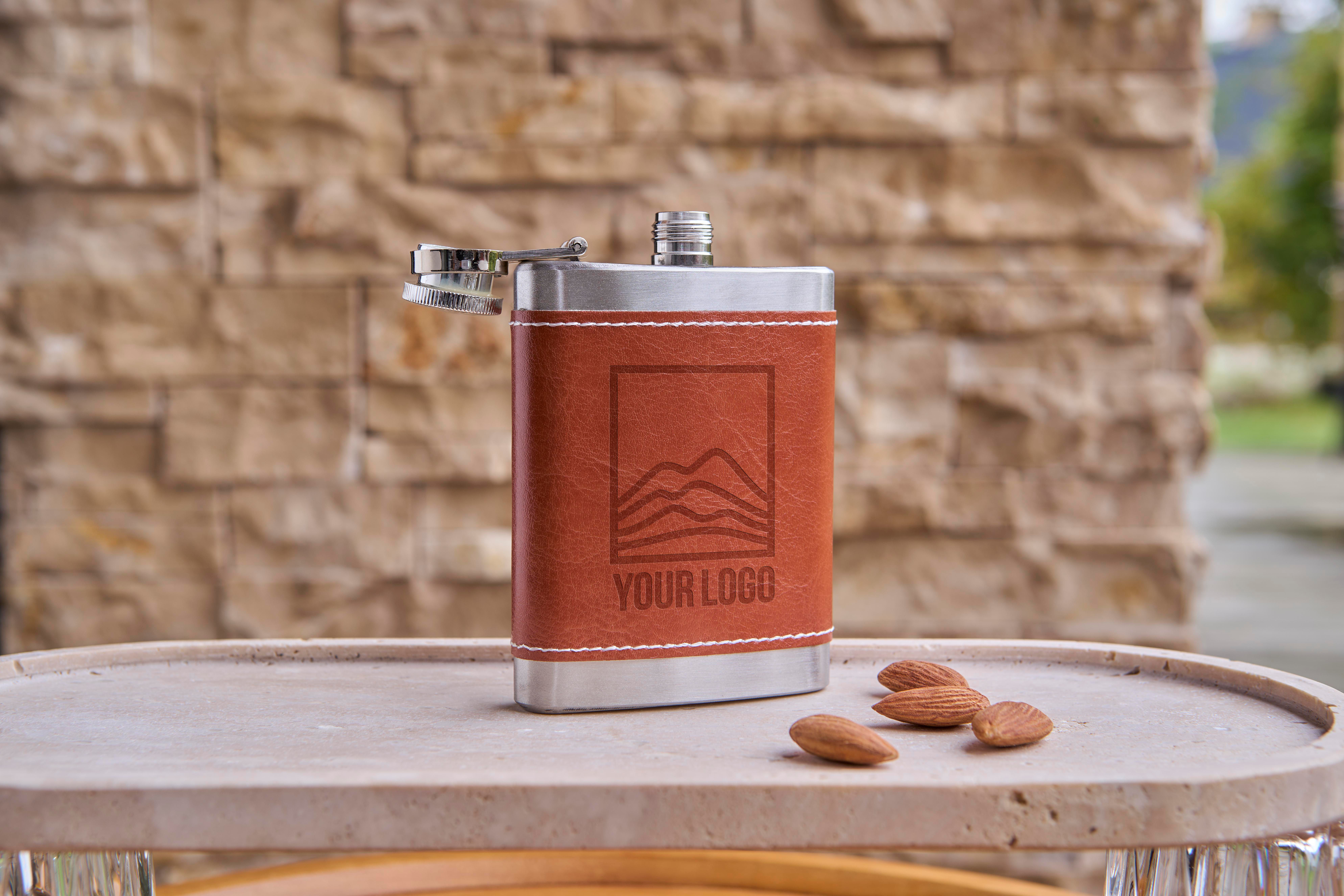 Flachmann aus Edelstahl Cedric als Werbegeschenk mit Logo.