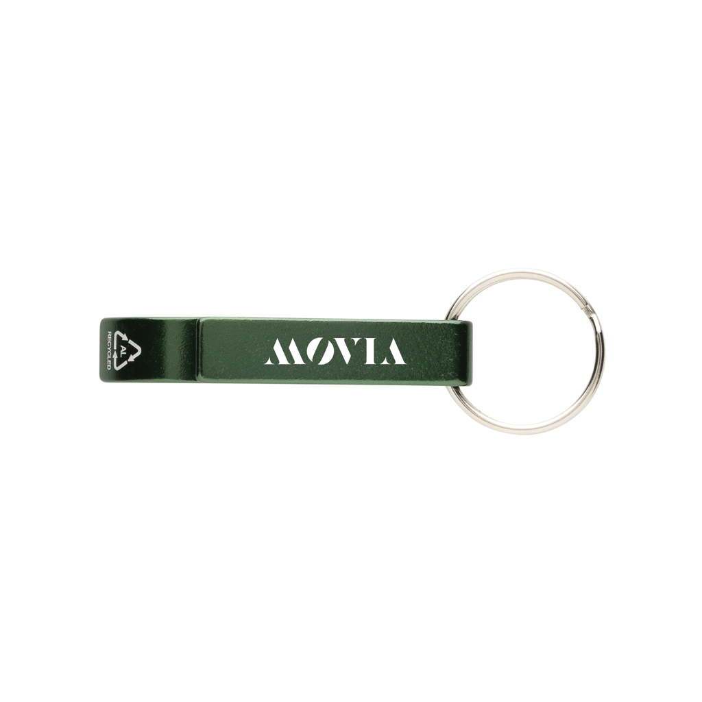 Flaschen- und Dosenöffner aus RCS recyceltem Aluminium mit Logo für Neukundengewinnung.