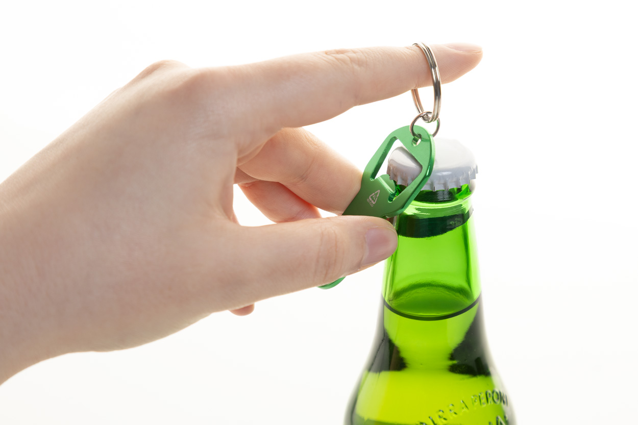 Flaschenöffner / Schlüsselanhänger Biropi für Firmen als Werbemittel bedruckt.