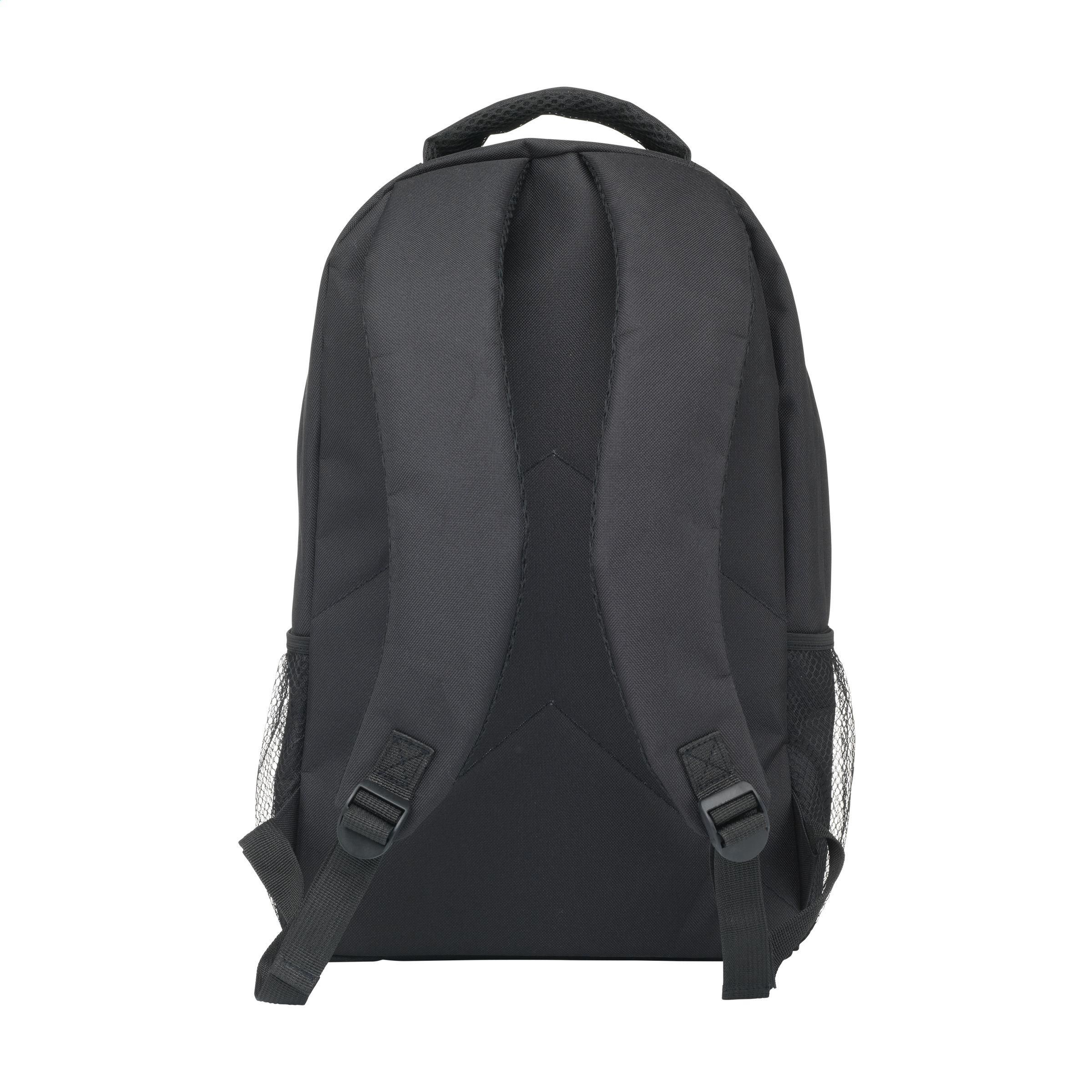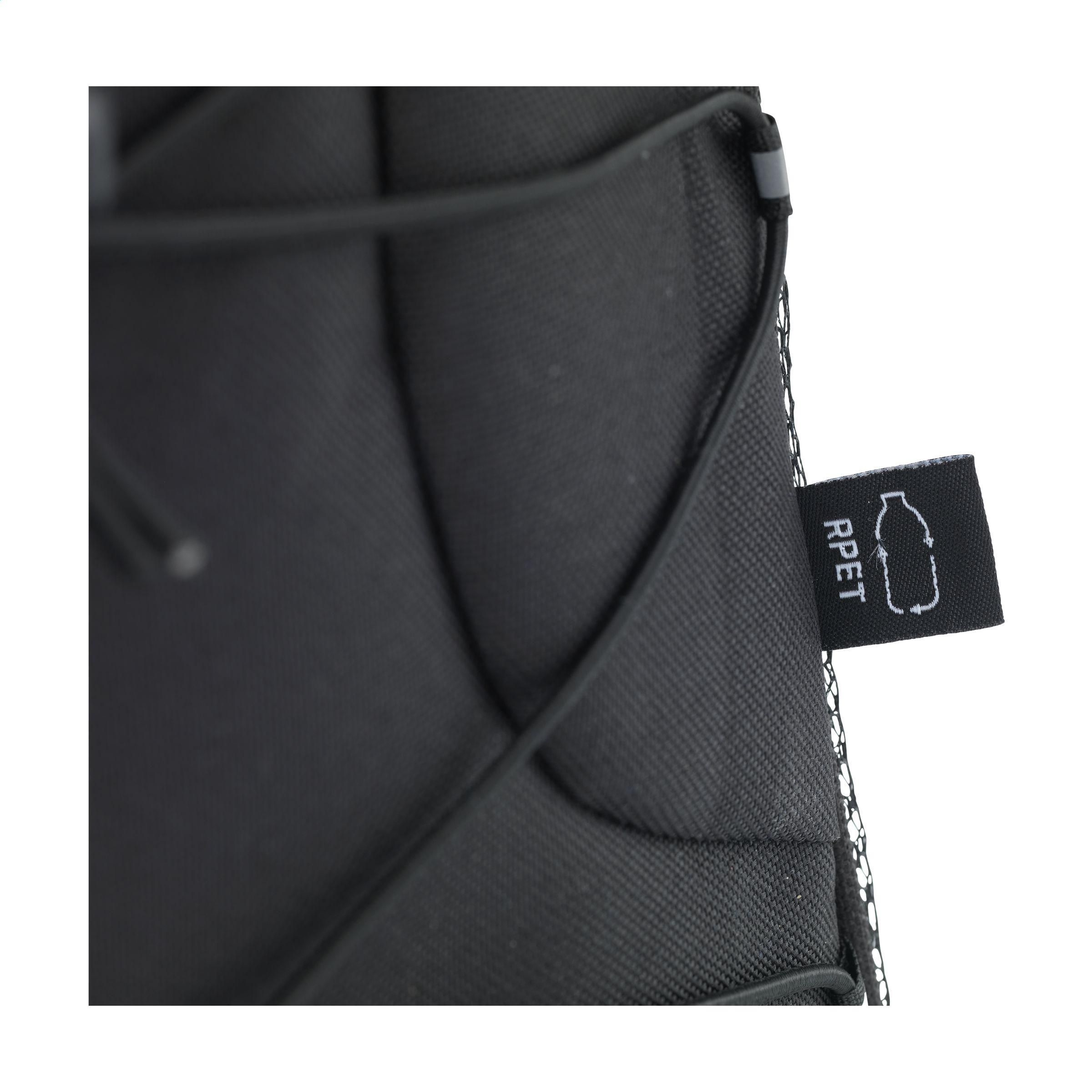 Rucksack aus robustem 600D RPET mit 2 Reißverschlussfächern. Die Fächer des großzügigen Hauptfachs sind mit schützendem Schaumstoff ausgestattet. Eines der Fächer ist für die Aufbewahrung eines Laptops bis zu 15,6 Zoll geeignet. Das andere Fach ist ideal für die Aufbewahrung kleinerer Accessoires, Dokumente oder eines Notizbuchs. Die seitliche Netztasche kann für den Transport einer Wasserflasche genutzt werden. An der Vorderseite der Tasche befindet sich ein praktisches Gummiband, das man festzurren kann – perfekt, um zum Beispiel eine Jacke oder einen Pullover zu transportieren. Für zusätzlichen Tragekomfort sind die Trageschlaufe, die verstellbaren Schulterriemen und die Rückseite mit Schaumstoff ausgestattet. Komplett gefüttert. Der Rucksack ist mit fluoreszierenden Akzenten auf der Vorderseite versehen. Damit ist man auch im Dunkeln gut sichtbar. GRS-zertifiziert. Gesamtes recyceltes Material: 97%. Fassungsvermögen ca. 20 Liter.