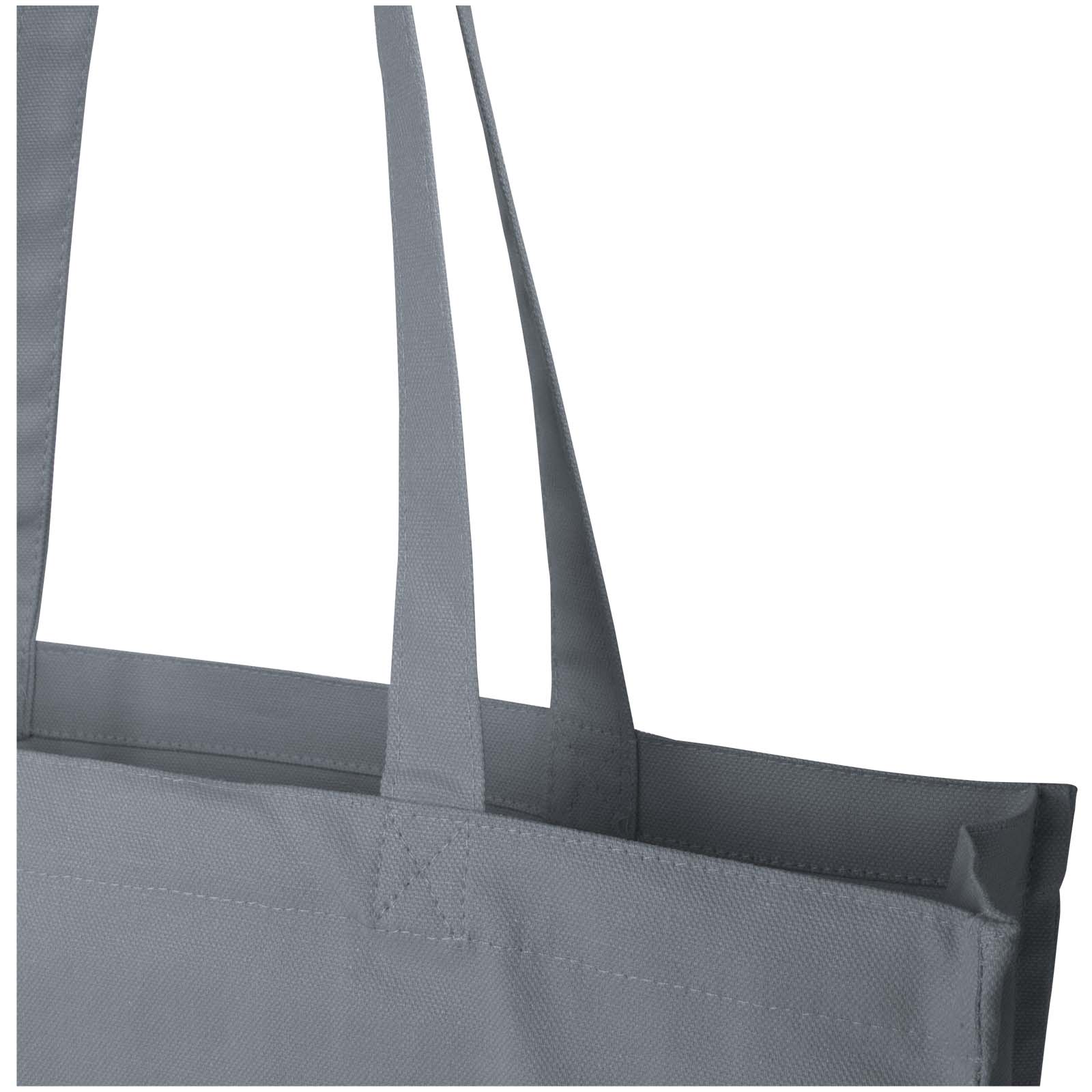 Die Florida Tragetasche mit Seitenfalten wird aus 100 % GRS-zertifizierter, Recyclingbaumwolle mit einem Gewicht von 270 g / m² hergestellt und ist eine verantwortungsbewusste und nachhaltige Wahl für den täglichen Bedarf. Mit einem Fassungsvermögen von bis zu 14 Litern und 30 cm langen Griffen ist sie ideal für den mühelosen Transport von Lebensmitteln, Büchern oder Alltagsgegenständen.