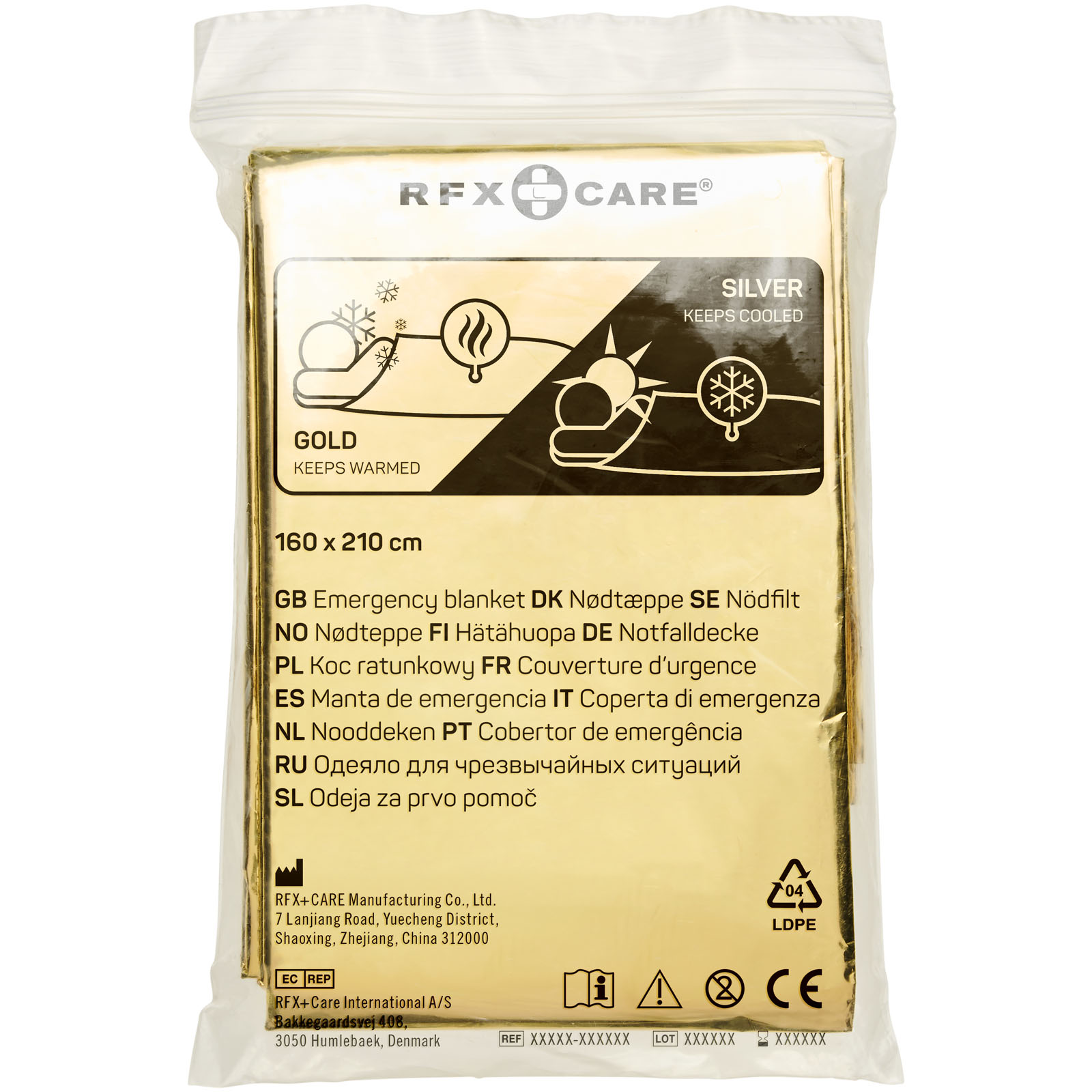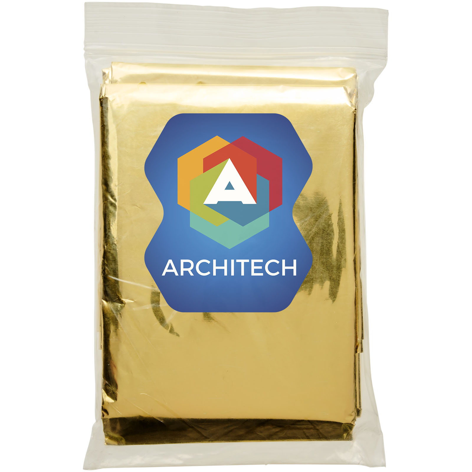 Frederik Notfalldecke mit 2 Funktionen mit Firmenlogo für Werbekampagnen.