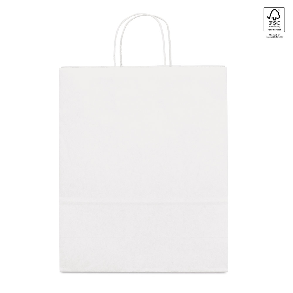 Kraftpapiertüte (90 g / m²) mit Griffen aus gedrehter Papierkordel. Hergestellt in Europa. Dieses Produkt wird aus FSC™-zertifiziertem Material und anderen kontrollierten Materialien hergestellt. 320 x 410 x 110 mm