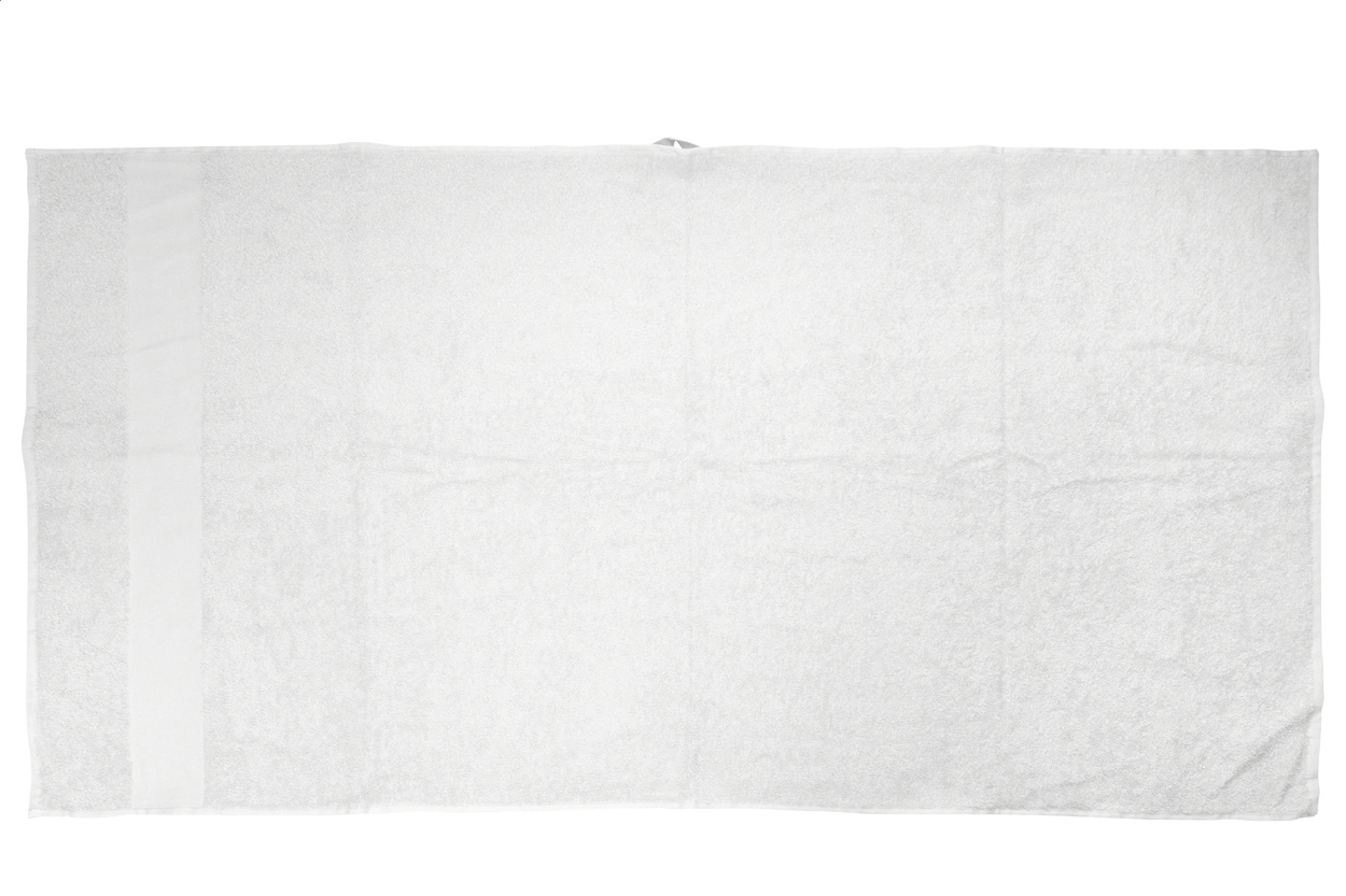Badetuch aus Baumwollfrottee mit Aufhängeschlaufe und bedruckbarem Bordüre. Material: 100% Baumwolle, 360 g/m².
