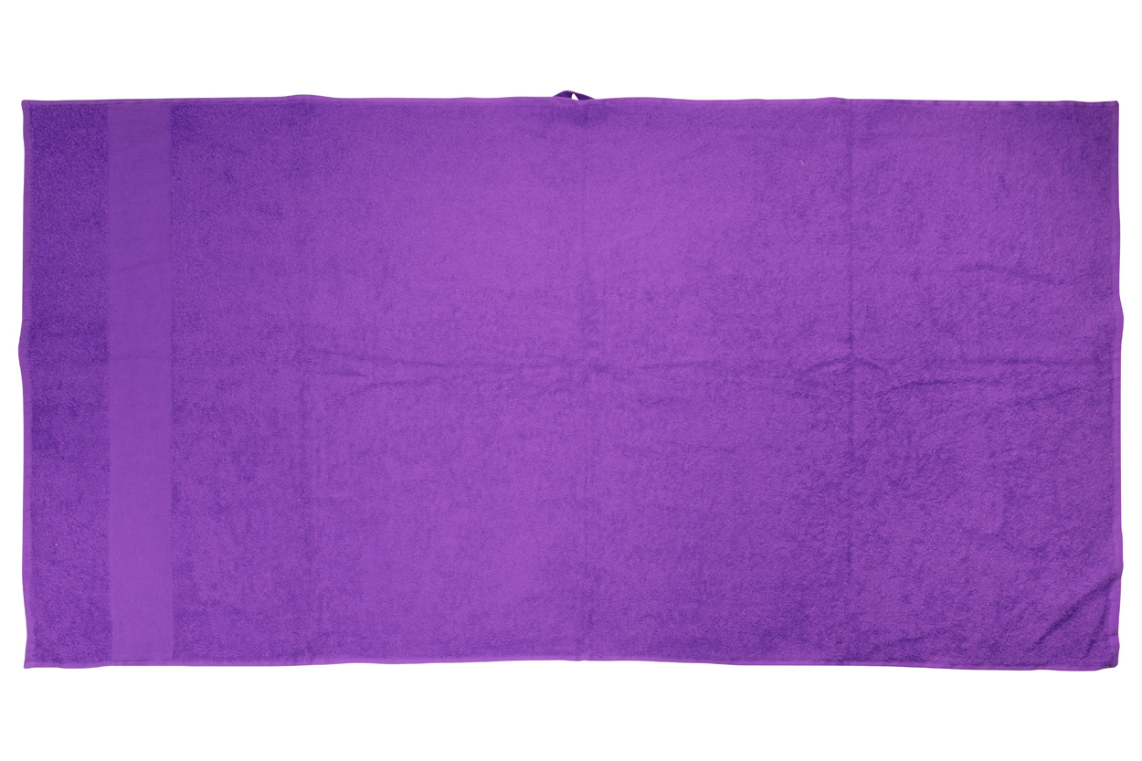 Badetuch aus Baumwollfrottee mit Aufhängeschlaufe und bedruckbarem Bordüre. Material: 100% Baumwolle, 360 g/m².