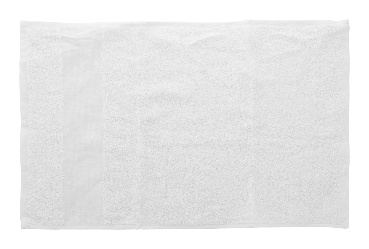 Gästehandtuch aus Baumwollfrottee mit Aufhängeschlaufe und bedruckbarer Bordüre. Material: 100% Baumwolle, 360 g/m².