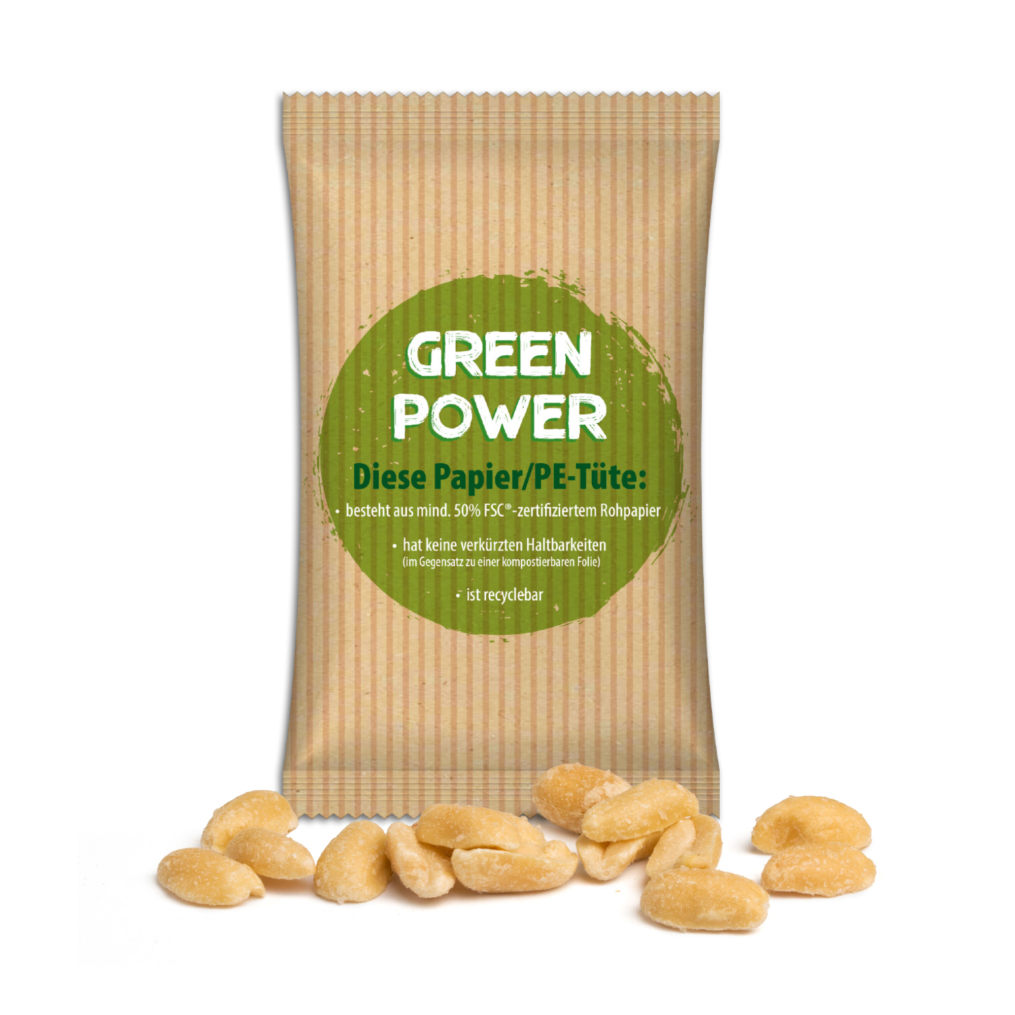 Geröstete Erdnüsse mit Firmenlogo individuell bedruckt.