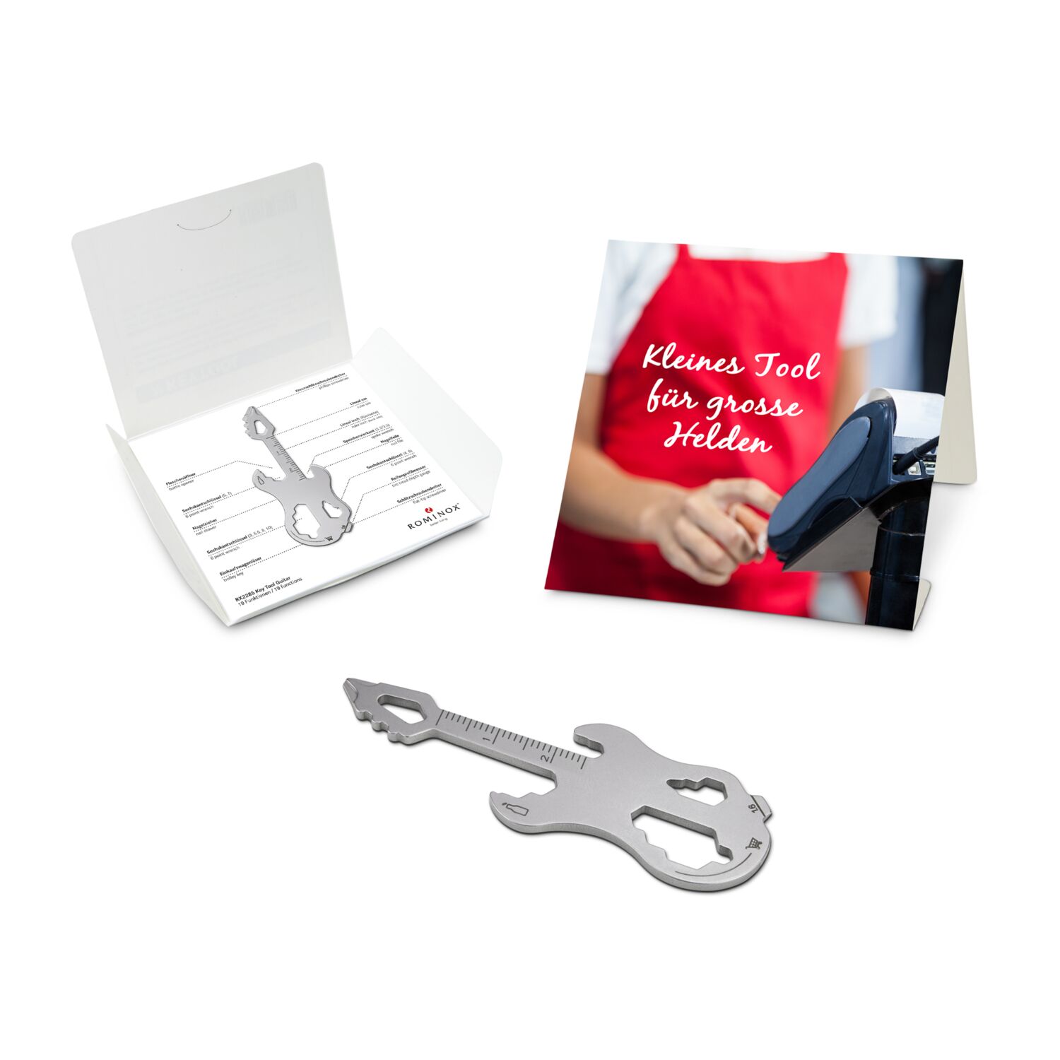 Geschenkartikel: ROMINOX® Key Tool Guitar / Gitarre (19 Funktionen) im Motiv-Mäppchen Große Helden (Einzelhandel) mit Firmenlogo und schneller Lieferung.