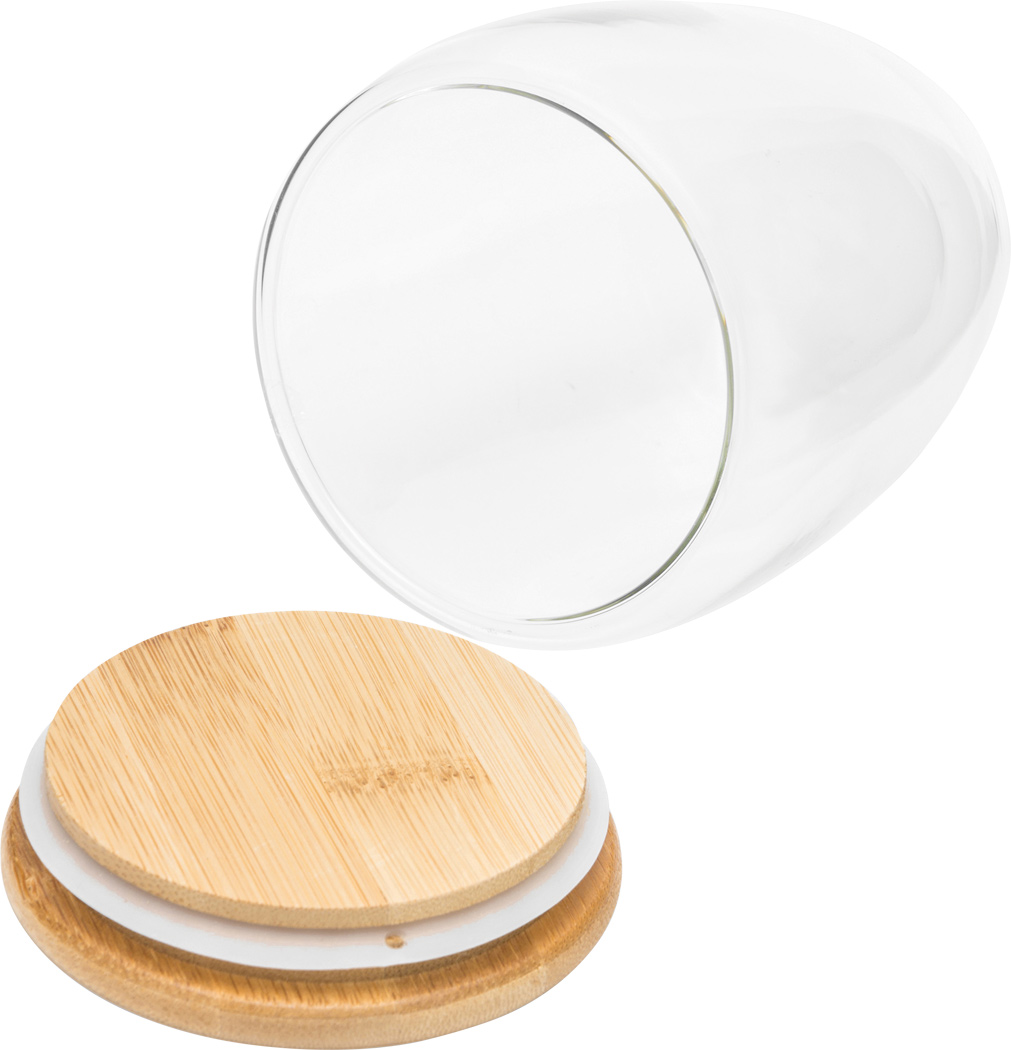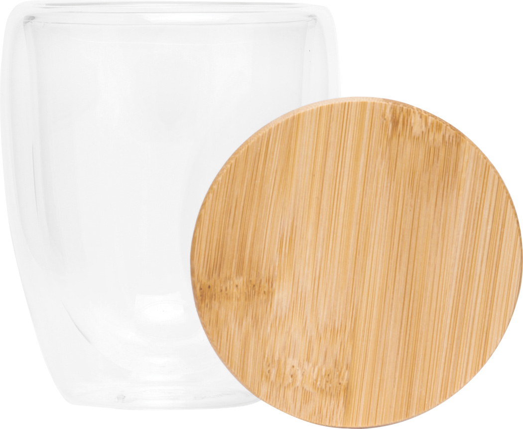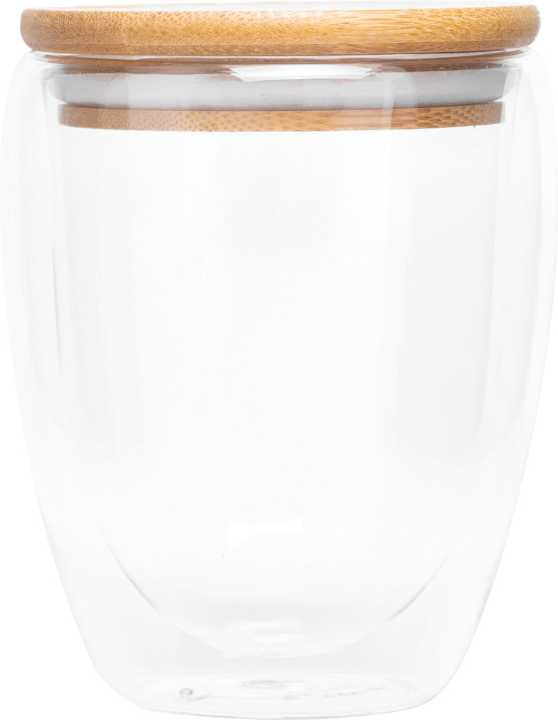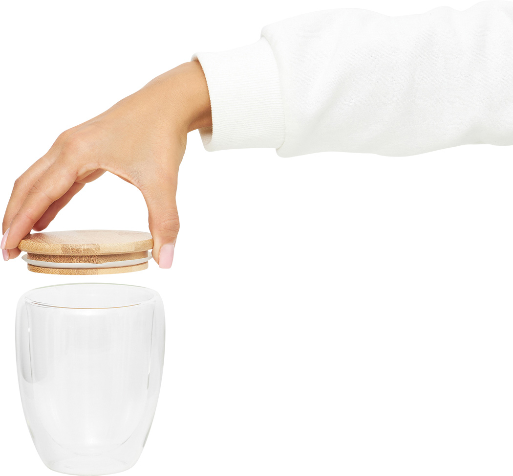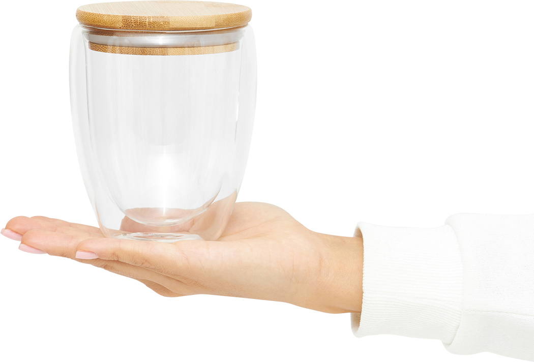Glas BAMBOO ART M, doppelwandig: Bambusdeckel mit Silikon-Dichtring, transparent, temperaturbeständig, Füllmenge ca. 350 ml