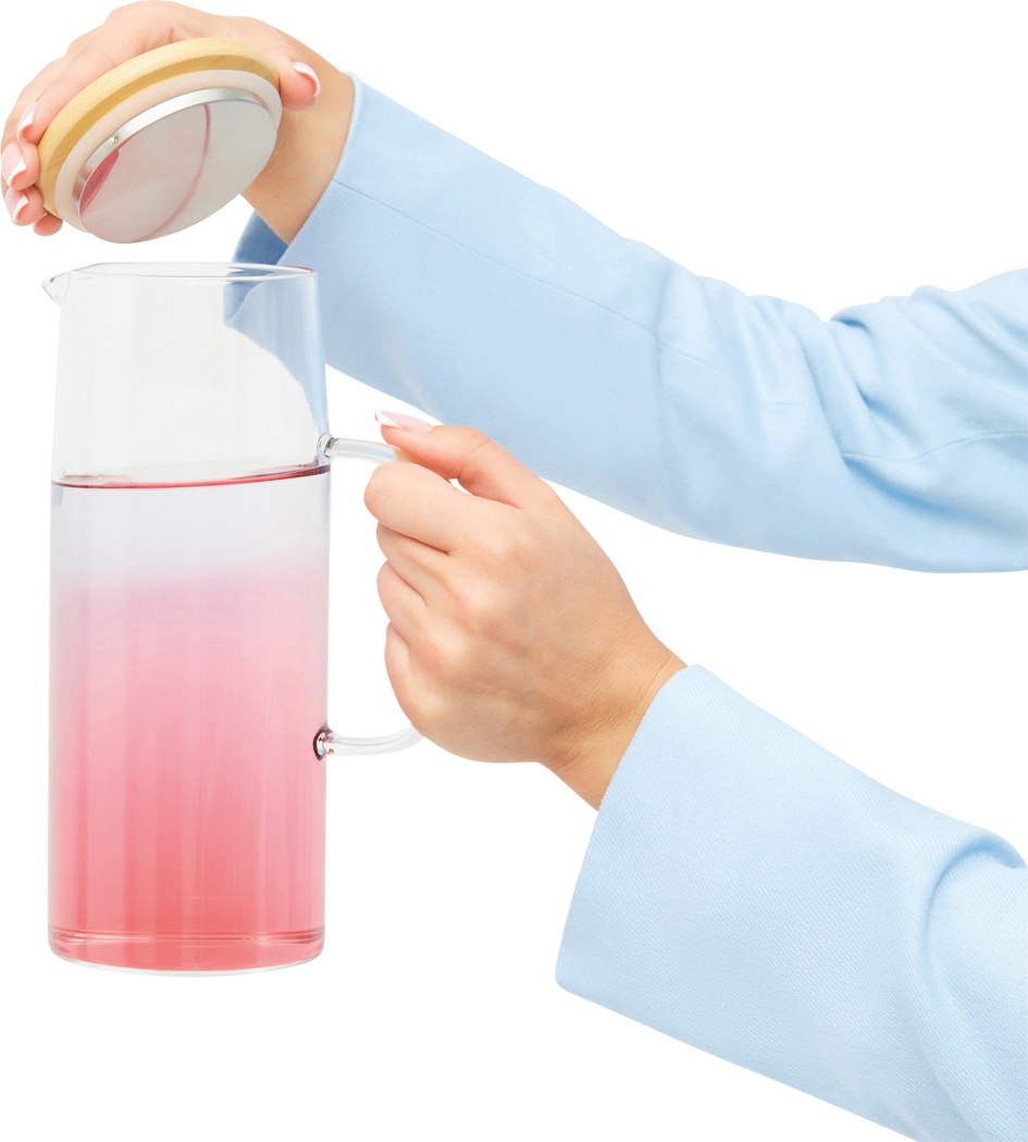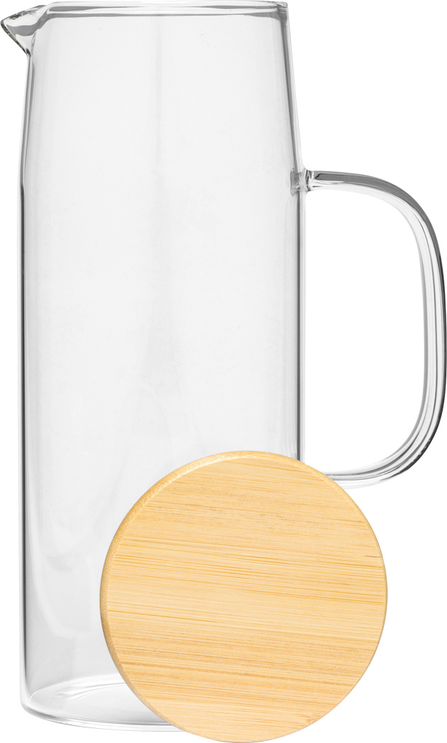 Glas-Karaffe BAMBOO PITCHER bedruckt mit Logo und kurzfristig lieferbar.