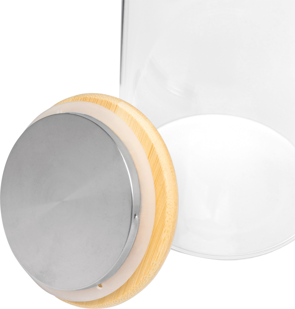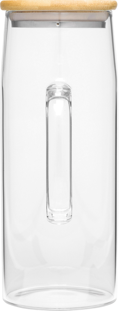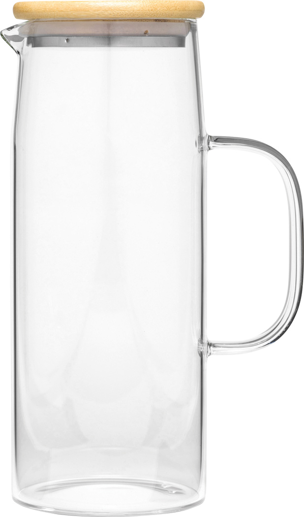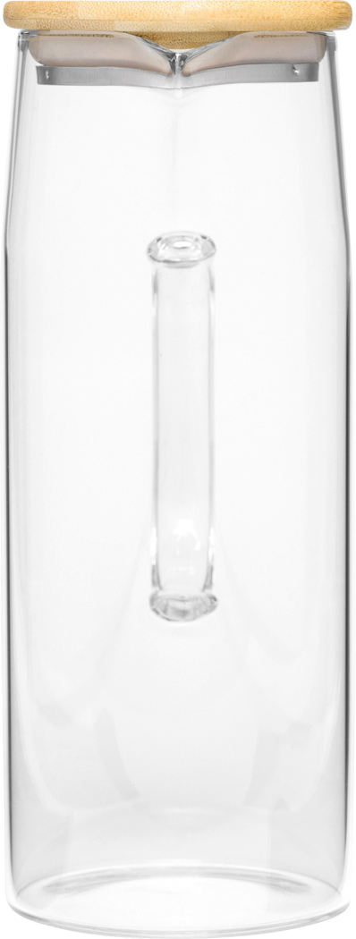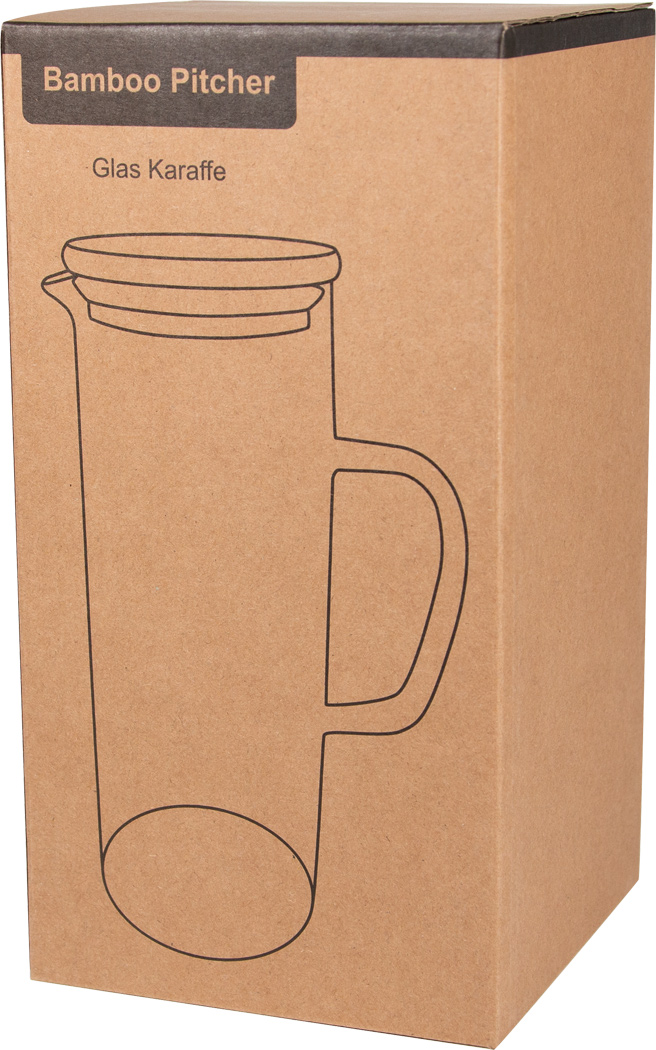 Glas-Karaffe BAMBOO PITCHER: mit Henkel, Bambusdeckel mit Silikon-Dichtring, Deckel mit Edelstahl an der Unterseite zum Schutz, Füllmenge ca. 1.200 ml, in Box