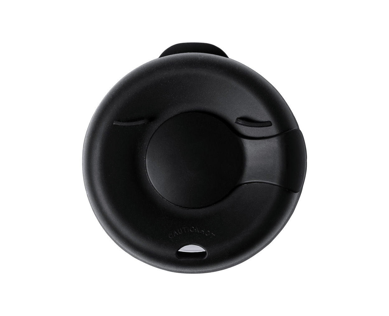 Einwandiger Reisebecher aus Borosilikatglas mit Griff aus Naturkork und Trinkdeckel aus Silikon. Füllmenge: 350 ml.