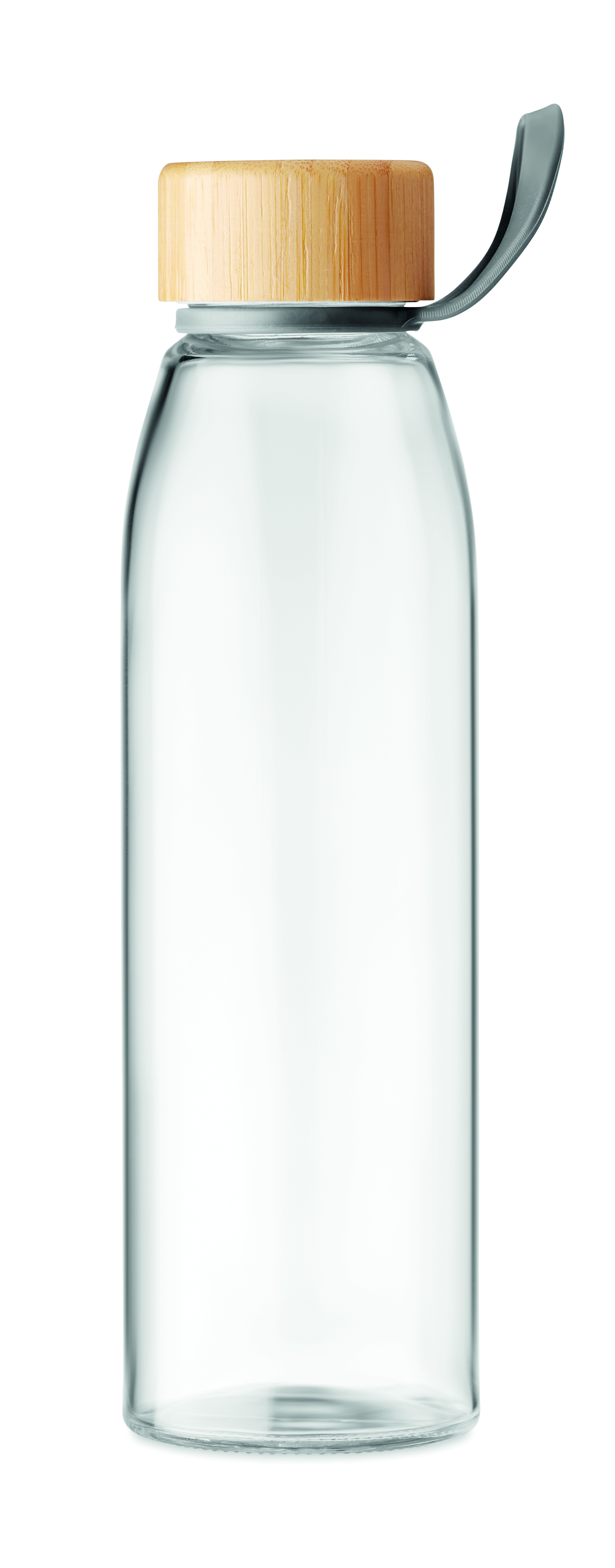 Glasflasche mit Verschluss aus Bambus und Schlaufe aus TPU. Nicht geeignet für kohlensäurehaltige Getränke. Füllmenge: 500 ml. Auslaufsicher. Bambus ist ein natürliches Produkt, es kann daher zu leichten Abweichungen in Farbe, Dekor und Maßen kommen.