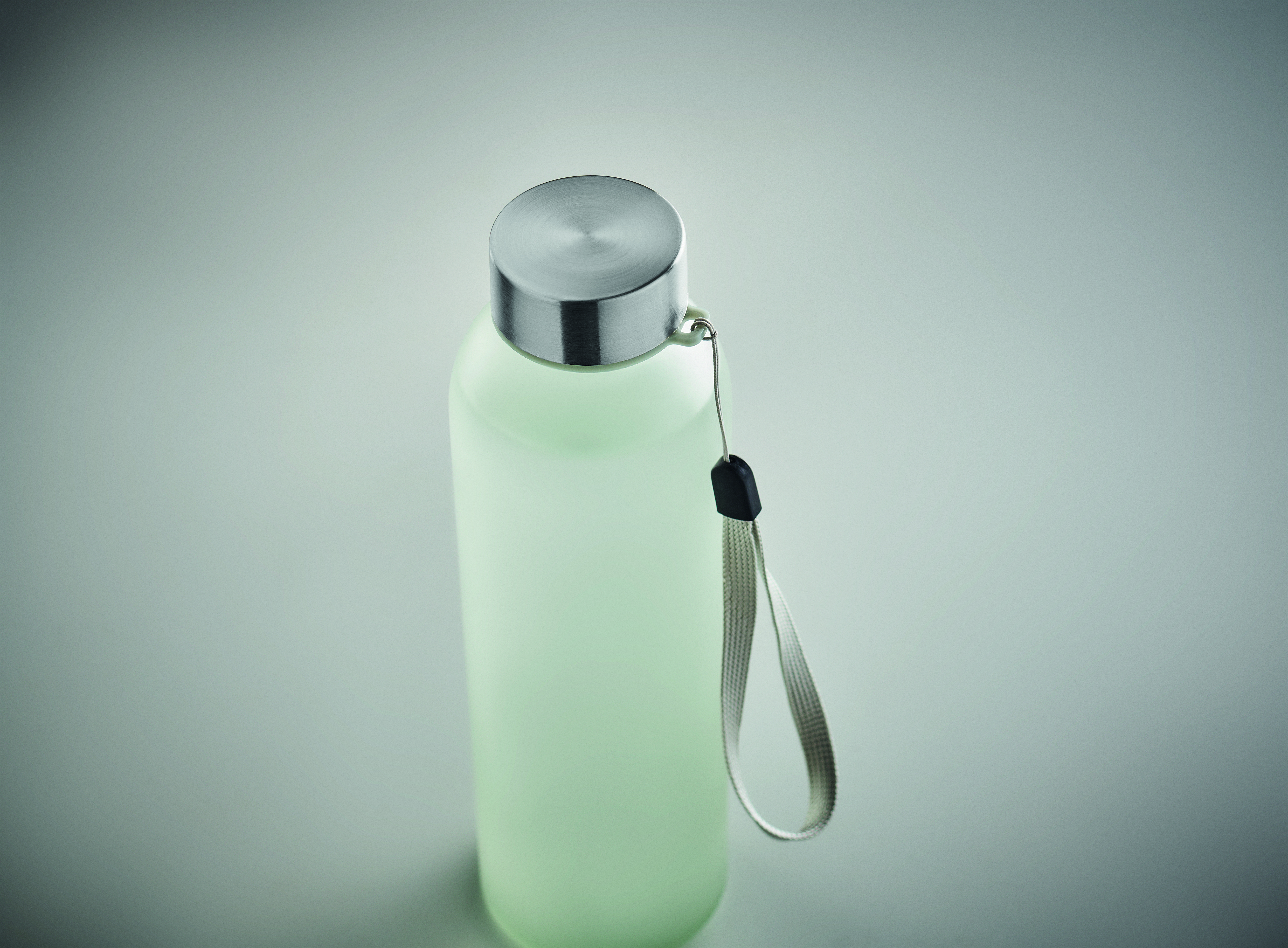 Glasflasche mit Verschluss aus Edelstahl und Schlaufe. Spezielle Beschichtung für Sublimationsdruck. Füllmenge: 500 ml.