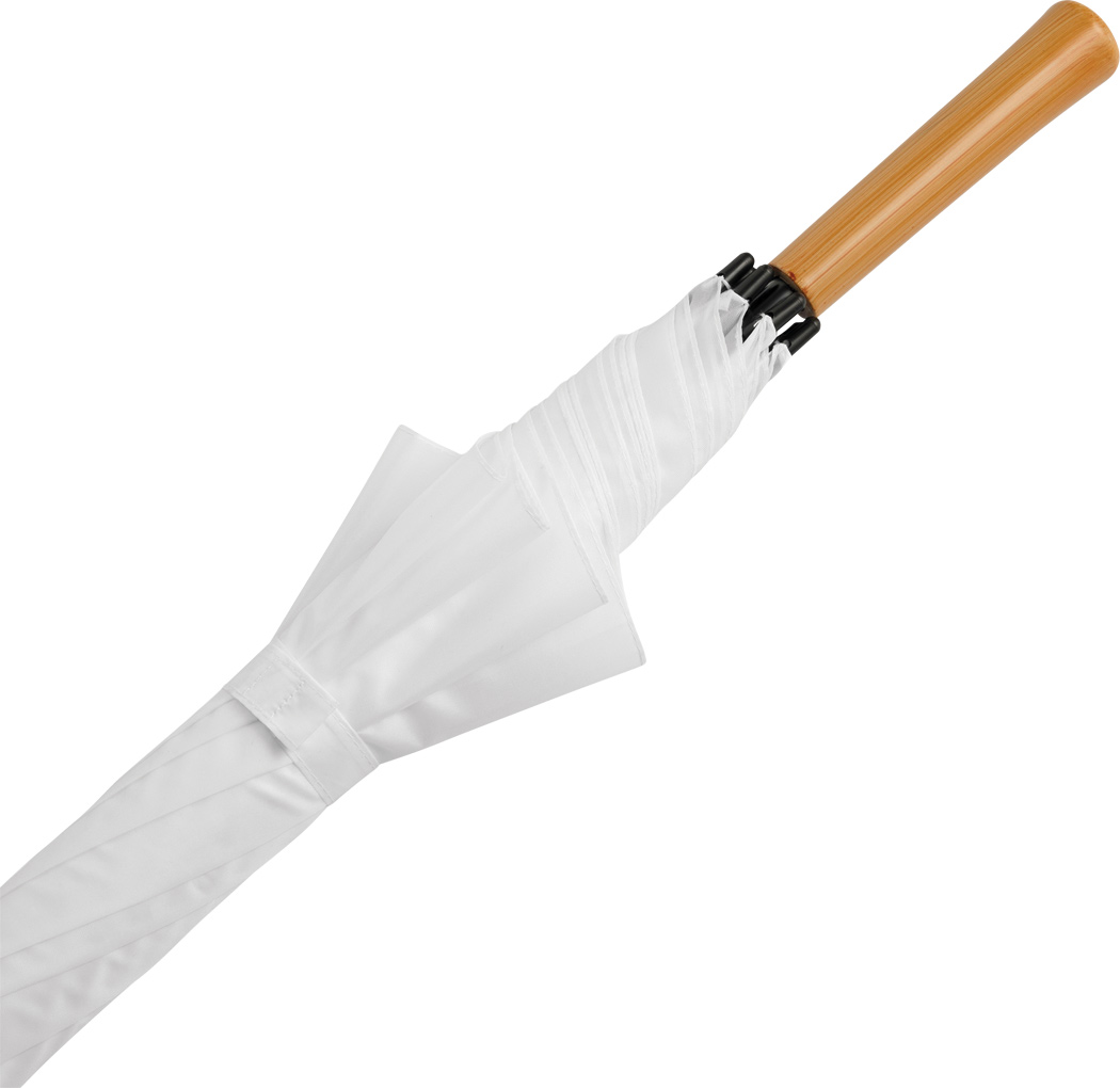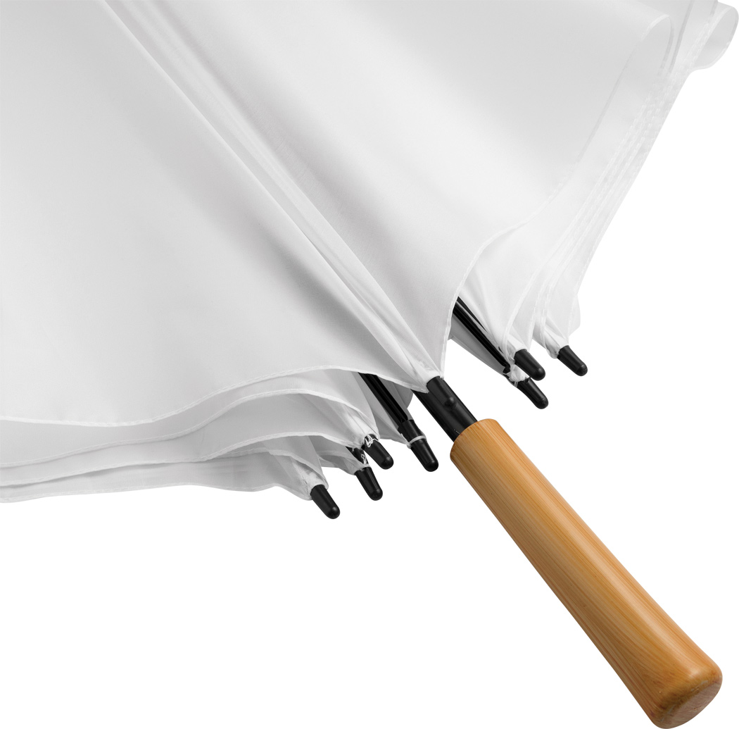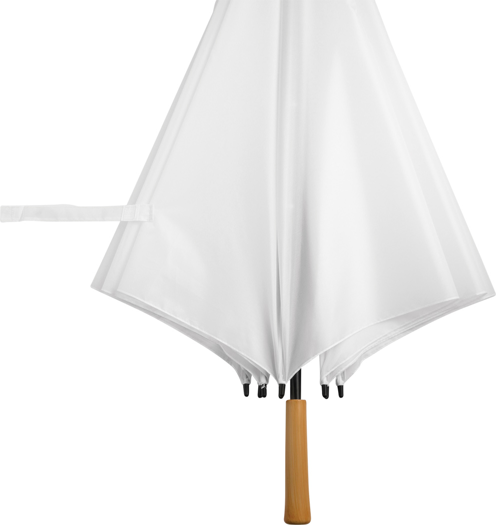Golfschirm RAINDROPS: Metallstock und Doppelmetallspeichen, Kunststofftipps, Griff in Holz-Optik, Polyester-Bespannung, Schließband mit Klettverschluss