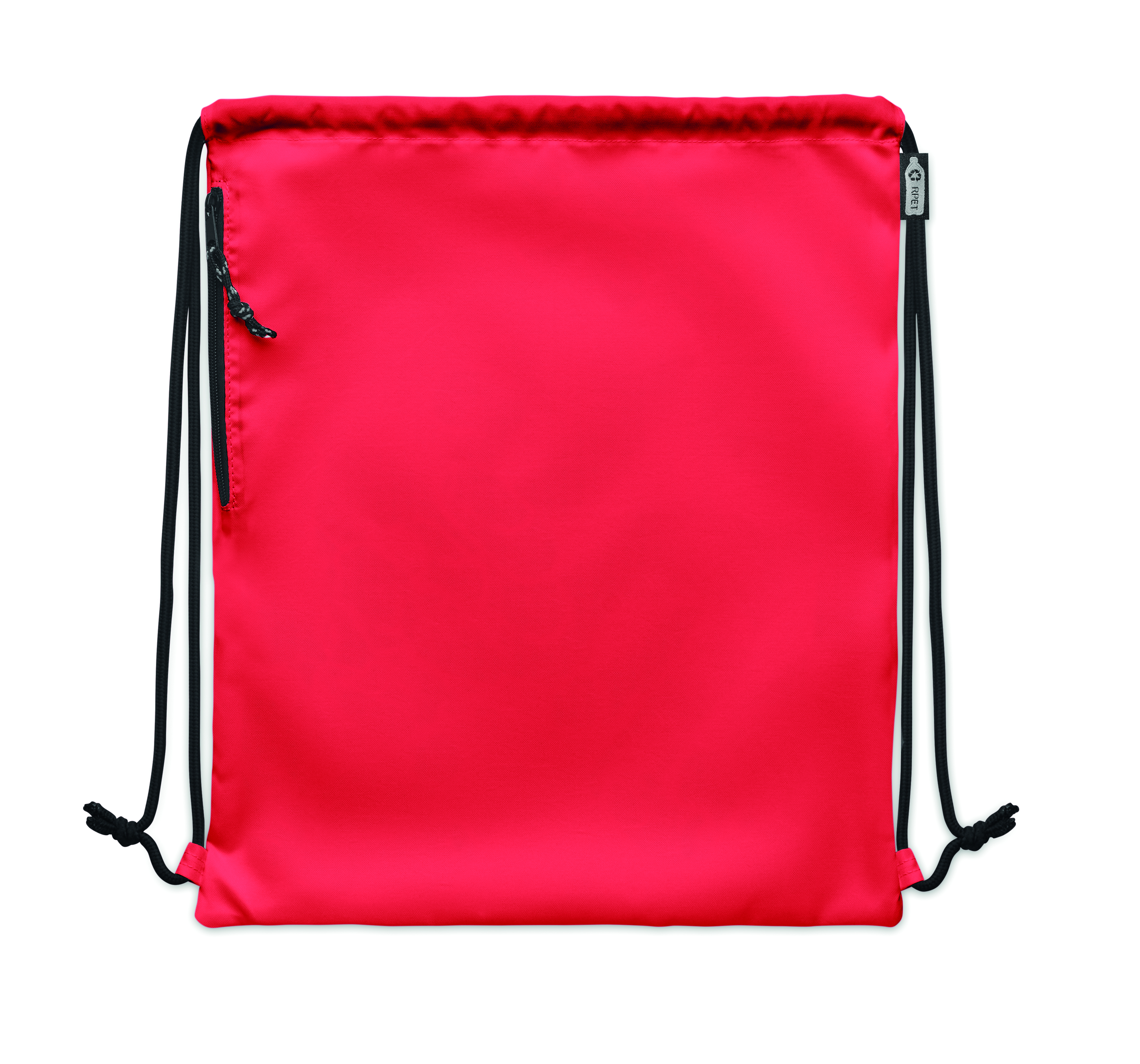 Großer Beutel mit Kordelzug. Seitliche Reißverschlusstasche. 300D RPET-Polyester