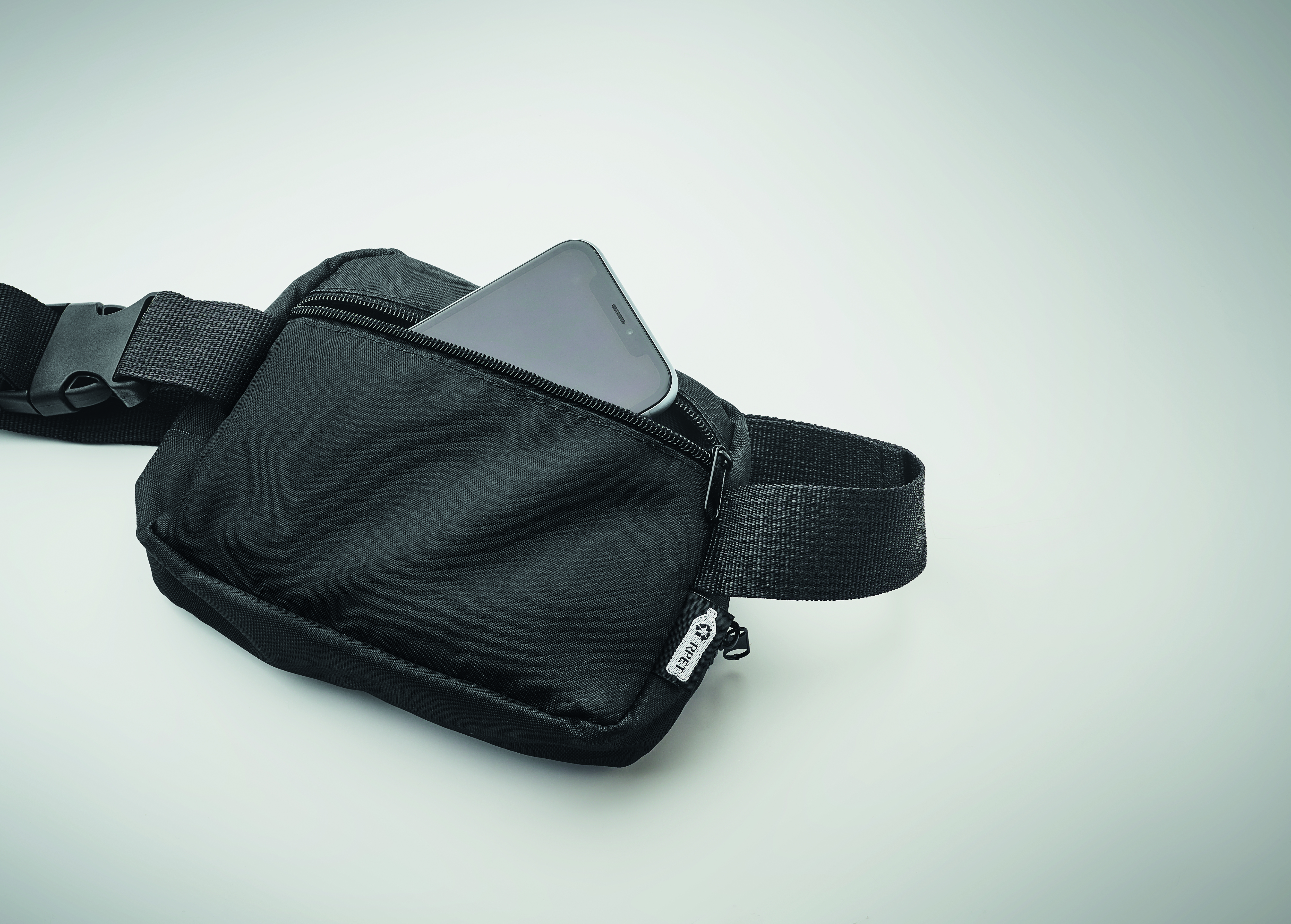 Gürteltasche aus 300D RPET Polyester mit Futter aus 210D RPET.