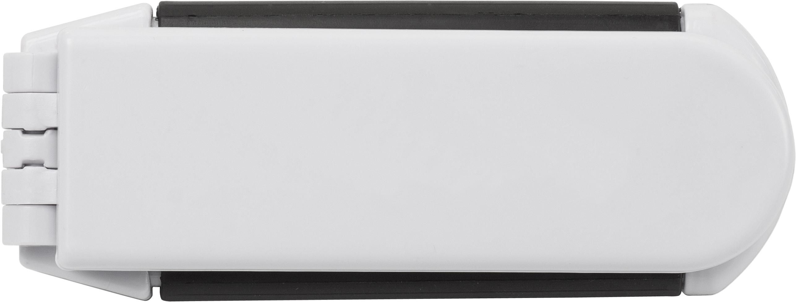 Haarbürste aus Kunststoff, mit innenliegendem Spiegel und Klappfunktion.