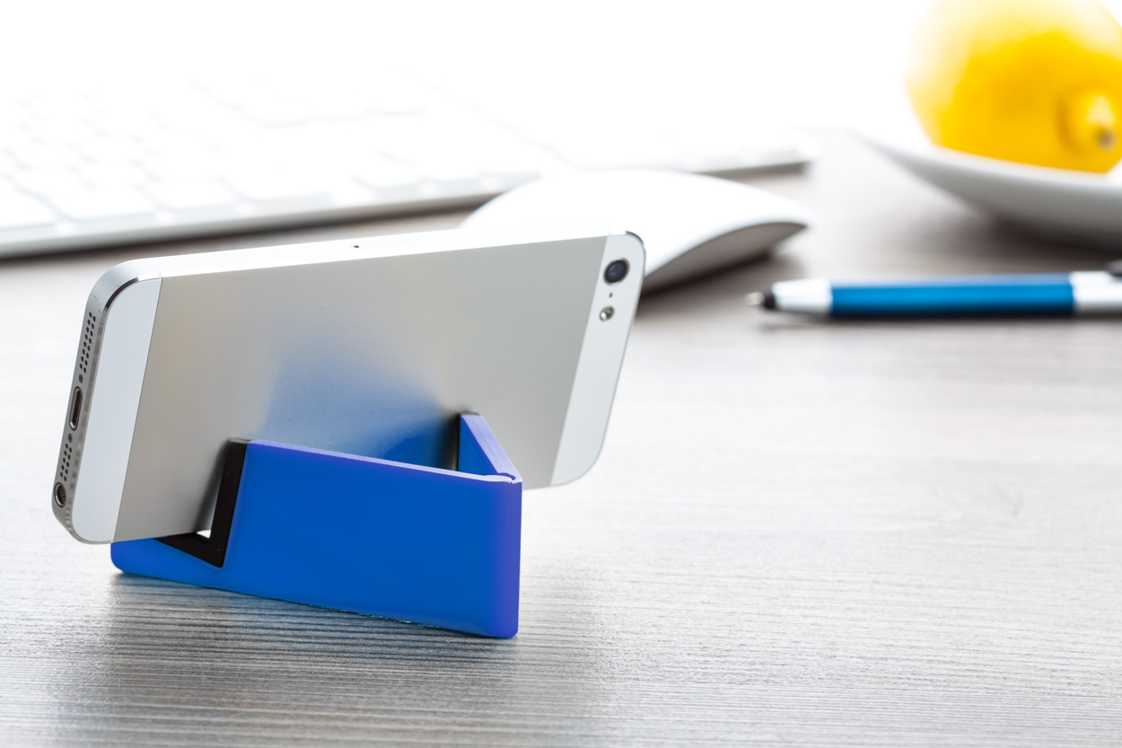 Handyhalter Plassi mit Logo für Messen und Events.