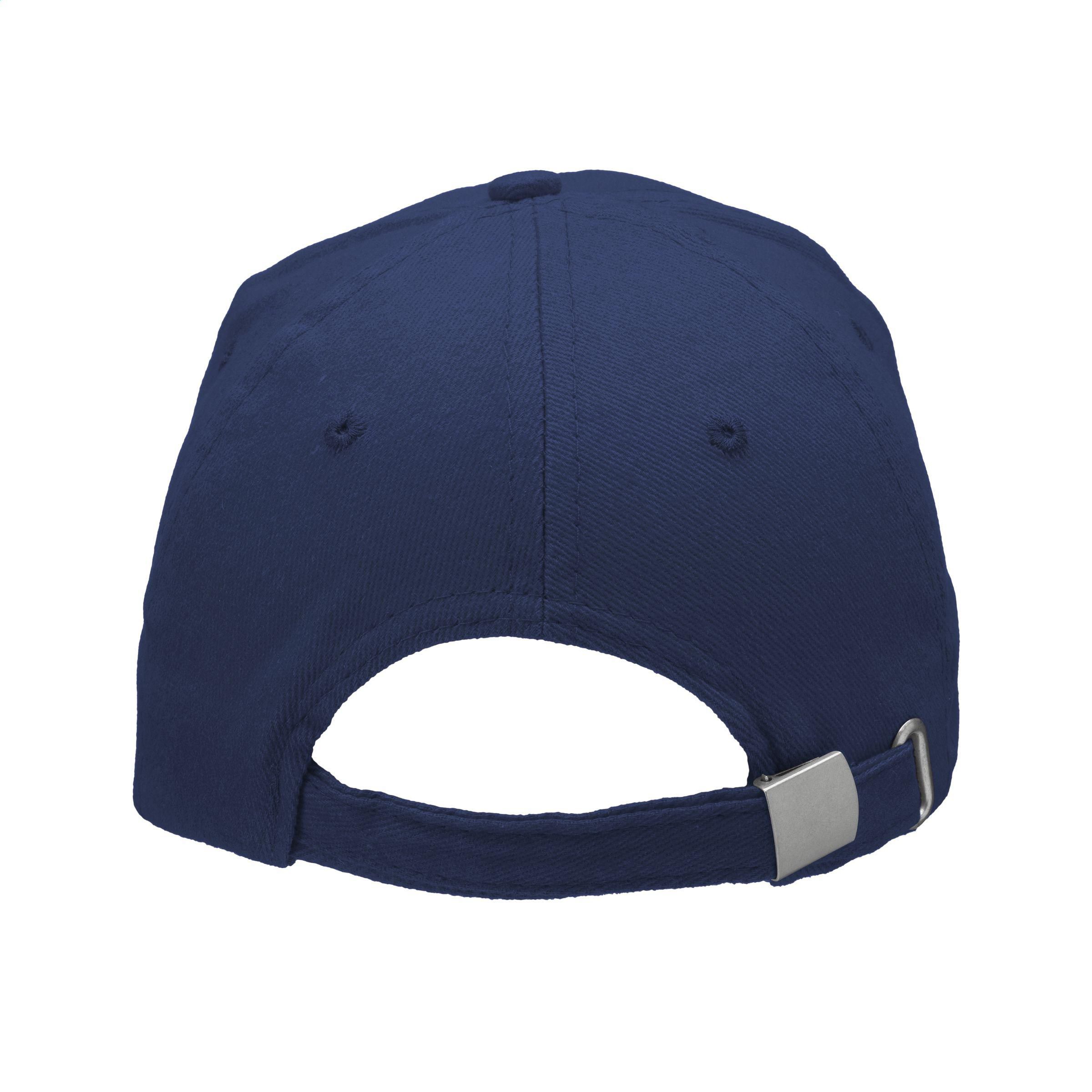 Starke Baseballkappe in besonders schwerer Qualität. Aus 100% gekämmter Baumwolle mit vorgeformtem Schirm und verstellbarem, metallenem Clipverschluss an der Rückseite.
