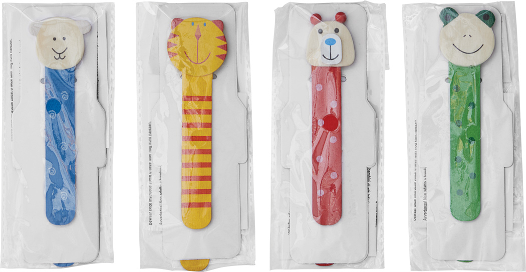 Holz-Lesezeichen FUNNY ANIMALS, 4-fach sortiert, Preis pro Stück
