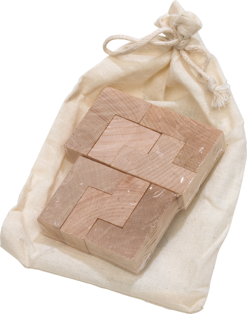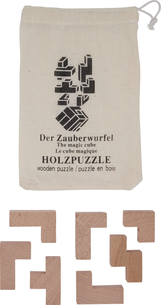 Holz-Puzzle CRAZY CUBE: aus naturbelassenem Wachholderholz, im umweltfreundlichen Baumwollbeutel