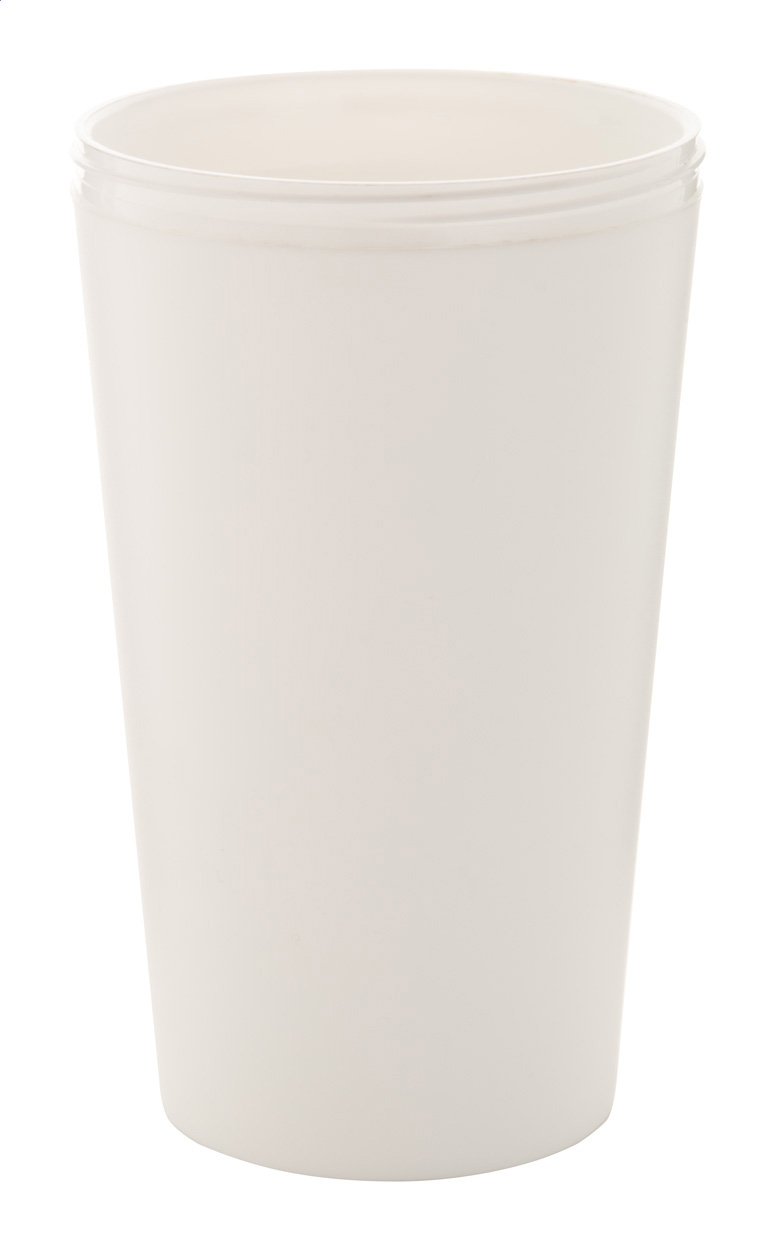Individualisierbarer, doppelwandiger Thermobecher aus Kunststoff mit Trinkdeckel und Silikongriff. Füllmenge: 400 ml. Mindestbestellmenge: 50 Stück.
