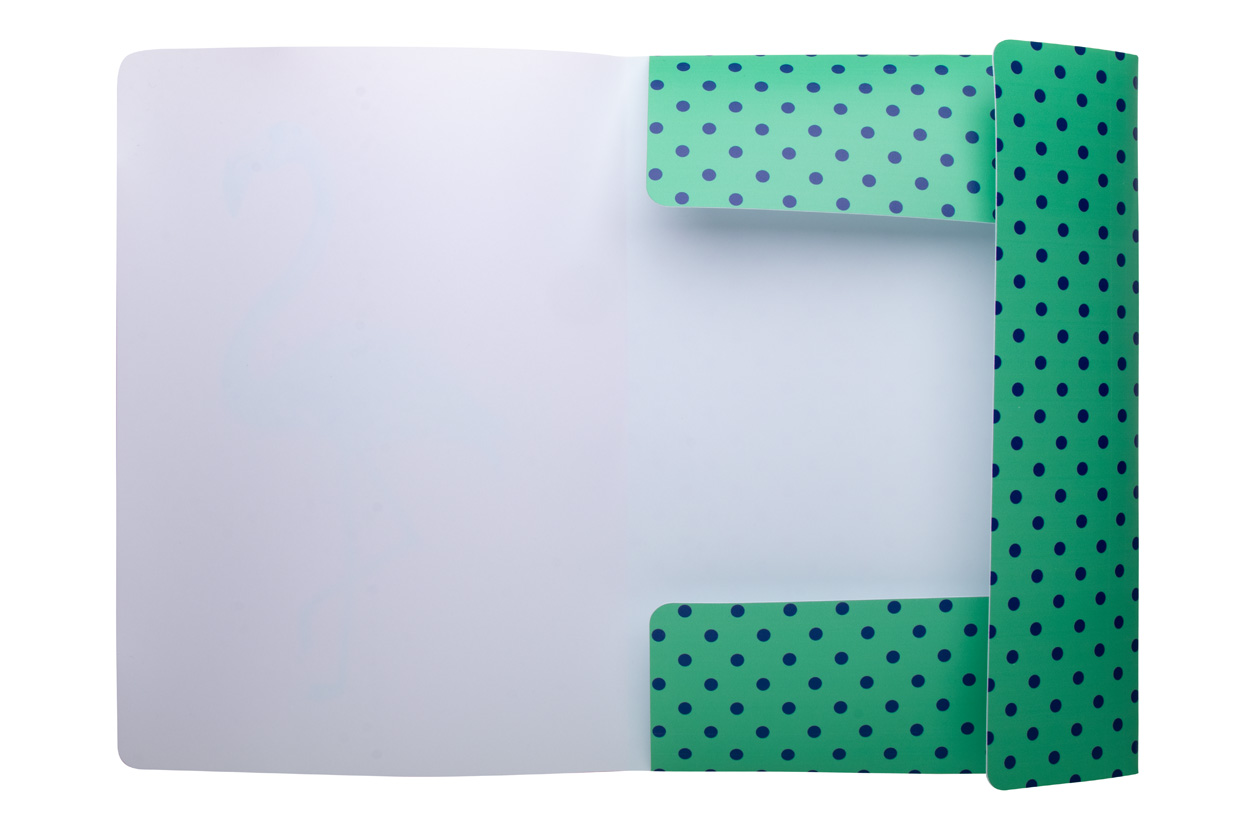 Individuelle Dokumentenmappe aus PP-Kunststoff mit Gummibandverschluss. Der Preis ist inklusive vollfarbiger Bedruckung. Mindestmenge: 50 Stk.