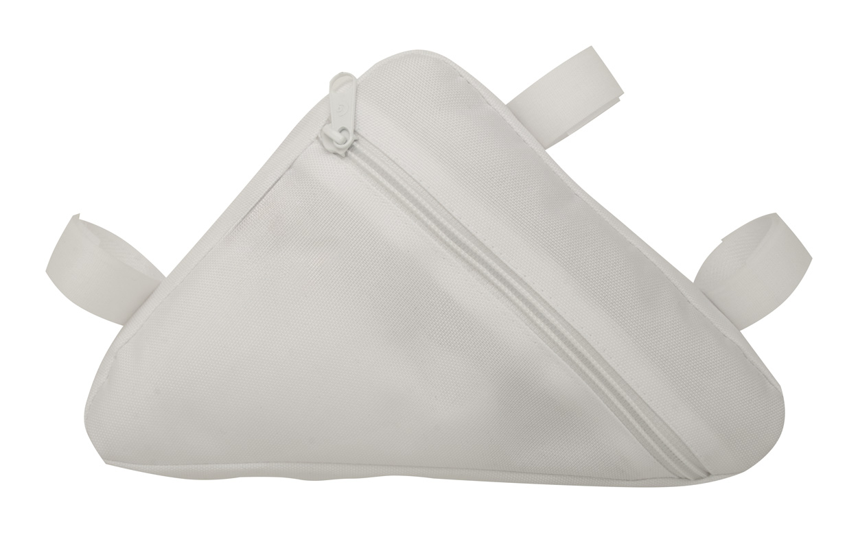 Individuelle Fahrradrahmentasche aus 600D RPET-Polyester mit Reißverschluss und einstellbaren Klettverschlussriemen. Der Preis ist inkl. vollflächigem Sublimationdruck. Mit RPET-Label. Mindestmenge: 25 Stk.