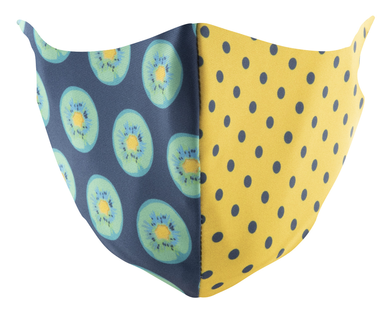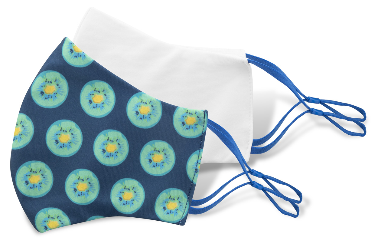 Individuelle, waschbare und wiederverwendbare Gesichtsmaske (zweilagig) mit verstellbaren elastischen Ohrschlaufen und Sublimationsdruck. Erwachsenen-Größe. Material: 100% Polyester (140g/m²) and 100% Baumwolle (140g/m²). Der Preis ist inkl. Sublimationsdruck. Mindestmenge: 50 Stk.