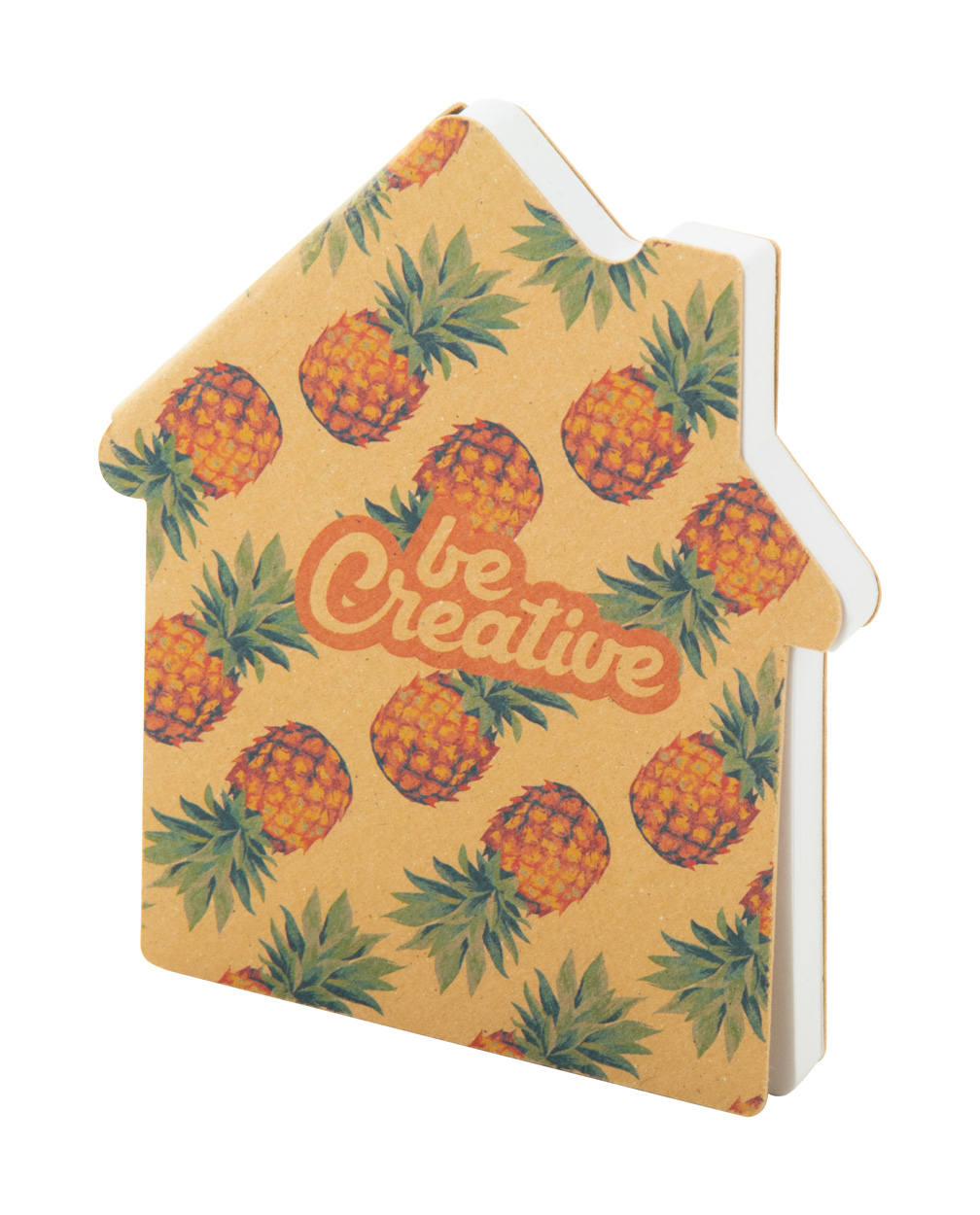 Individueller Haftnotizblock in hausform mit Umschlag aus recyceltem Kraftpapier. Enthält 50 Blatt Haftnotizen aus Recyclingpapier. Im Preis inbegriffen ist der vollfarbig bedruckte Außenumschlag. Mindestbestellmenge: 100 Stück.