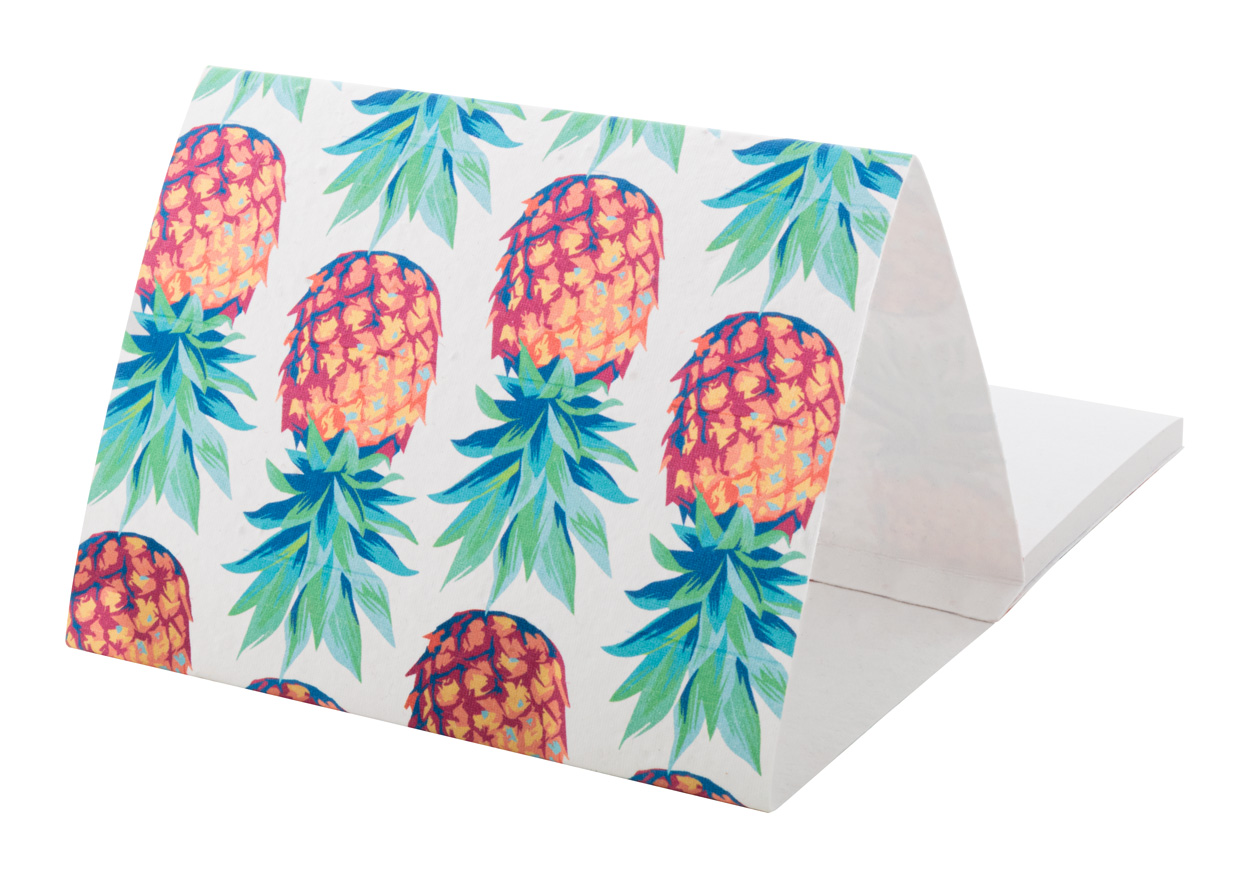 Individueller Kalnder aus Samenpapier (mit sortierten Wildblumensamen) mit Haftnotizen. Beinhaltet 50 Haftnotizen aus Recyclingpapier (75x75mm) und 100 Filmmarker in 5 unterschiedlichen Farben (12x44mm). Der Preis beinhaltet einen vollfarbigen Druck auf der Cover-Außenseite. Mindestmenge: 100 Stk.
