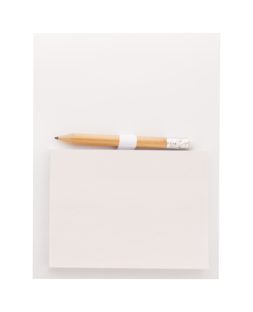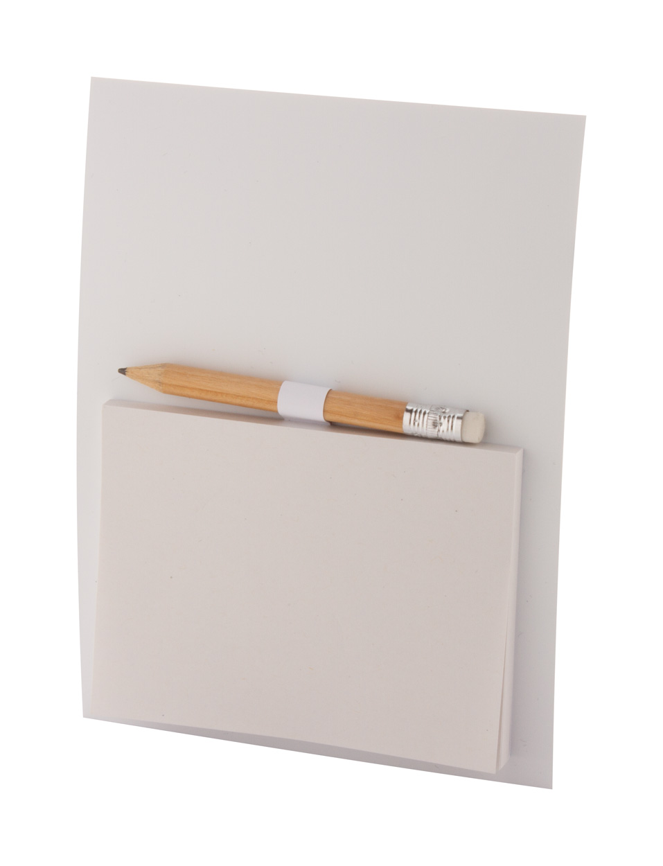 Individueller Kühlschrankmagnet mit vollfarbiger Bedruckung, Haftnotizblock (100 x 75 mm) mit 50 Haftnotizen aus Recyclingpapier und Holzbleistift. Mindestmenge: 100 Stk.