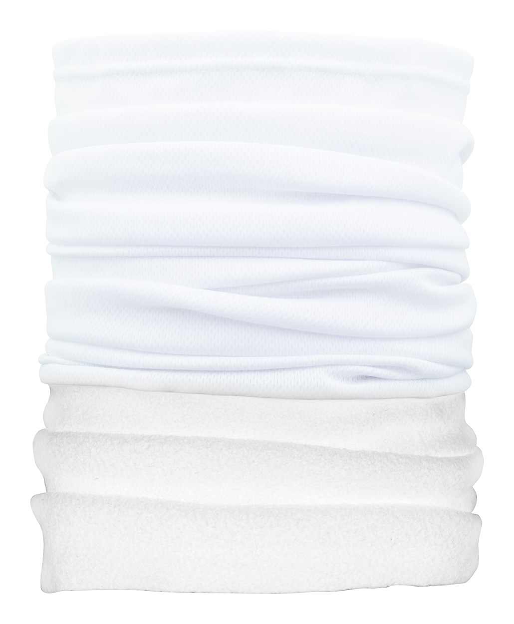 Individueller Multifunktionsschal aus atmungsaktivem und schnell trocknendem Polyester mit farbigem Polarfleece-Halswärmer. Der Preis ist inkl. vollflächigem Sublimationsdruck auf dem Polyesterteil. Material: 100 % Polyester (135 g/m²) und Polarfleece (160 g/m²). Mindestmenge: 100 Stk.