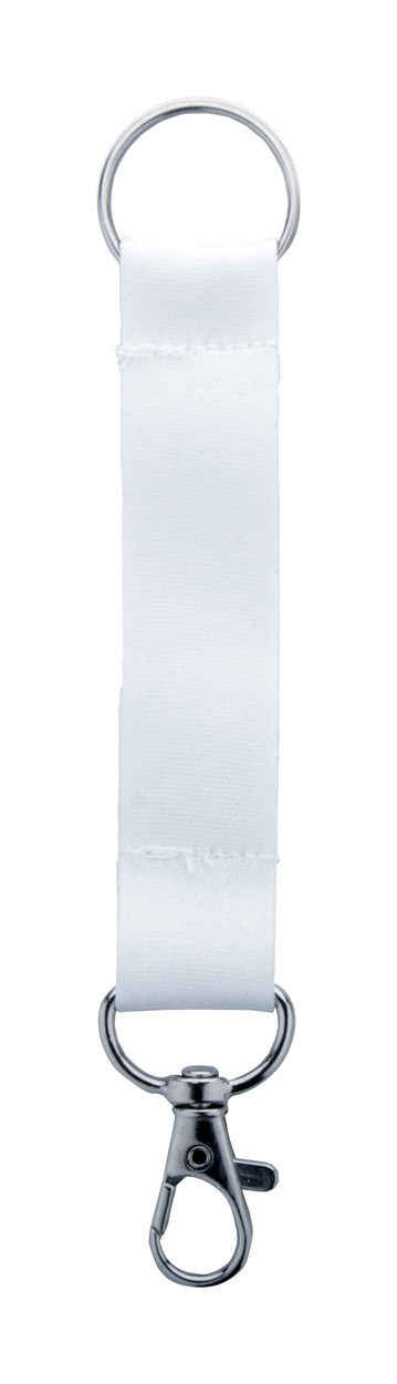 Individueller Mini-Schlüsselanhänger aus RPET-Polyester mit beidseitigem Sublimationsdruck. Mit Metallkarabiner und Ring. MOQ: 100 Stück.
