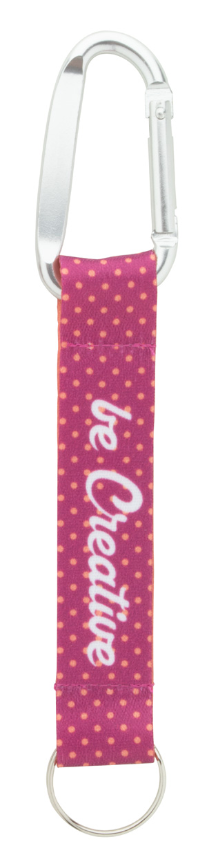 Individueller Schlüsselanhänger aus RPET-Polyester mit Metallkarabiner aus Aluminium und Schlüsselring aus Metall. Der Preis ist inkl. Sublimationsdruck auf beiden Seiten. Mindestmenge: 100 Stk. Mit RPET-Label.