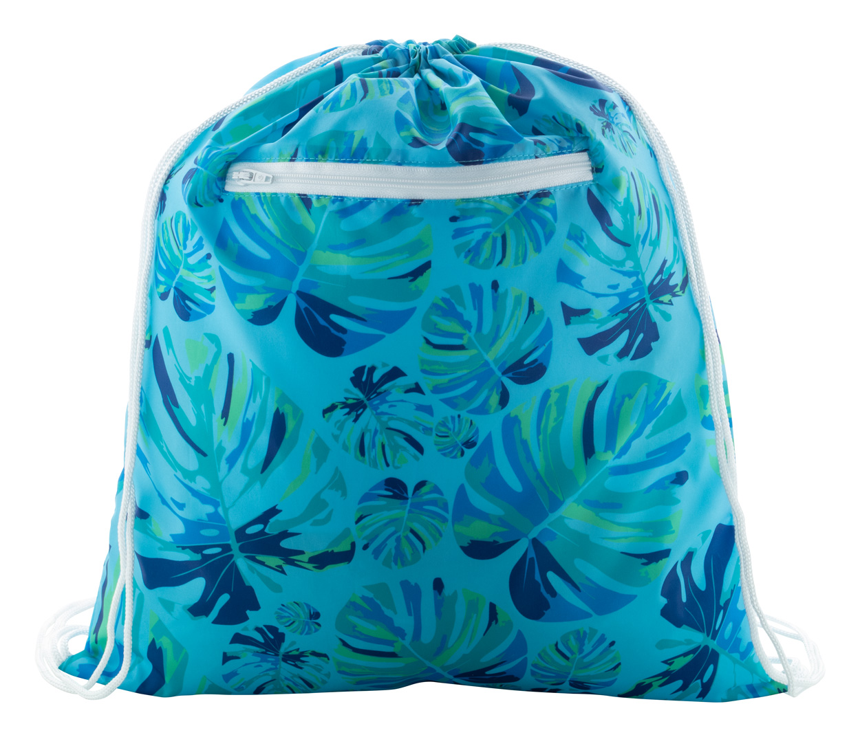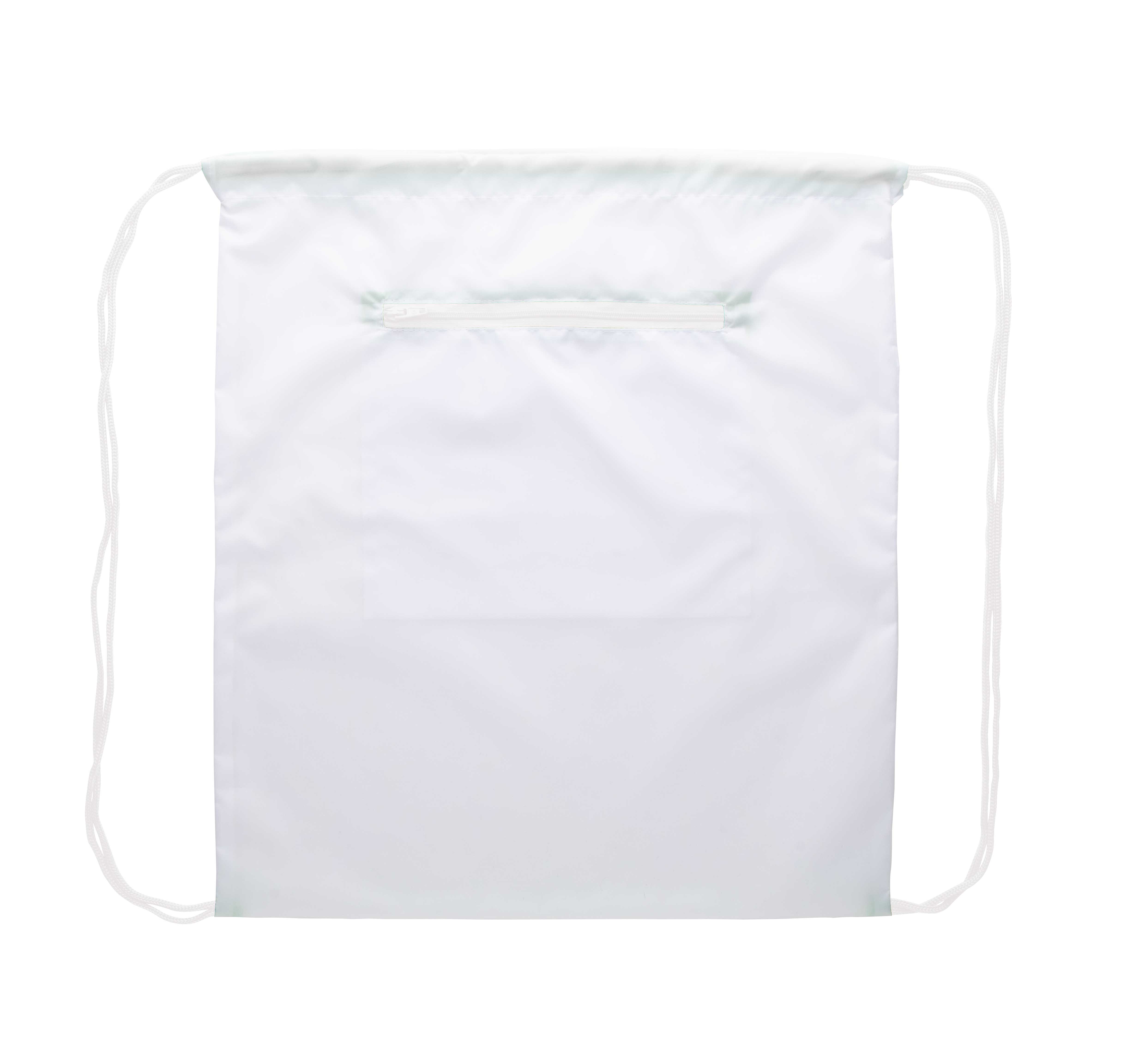 Individueller Turnbeutel mit Zugkordeln, mit Reißverschlusstasche vorne, Material: 190T Polyester. Der Preis ist inkl. vollflächigem Sublimationsdruck. Mindestmenge: 25 Stk.