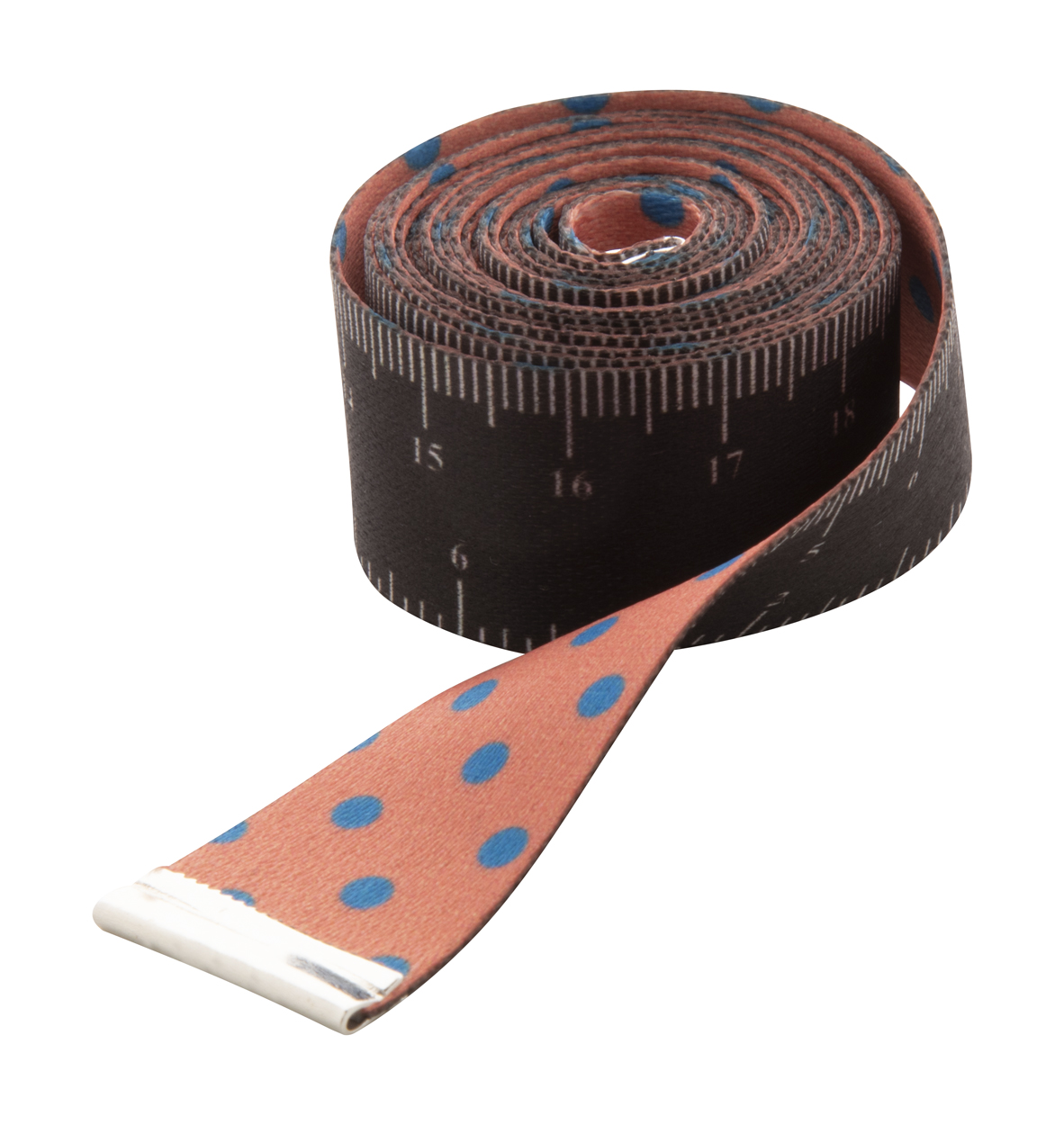 Individuelles Schneidermaßband, 150cm, aus RPET mit Metallklips. Der Preis ist inklusive Sublimationsdruck auf beiden Seiten. Mindestmenge: 100 Stk.