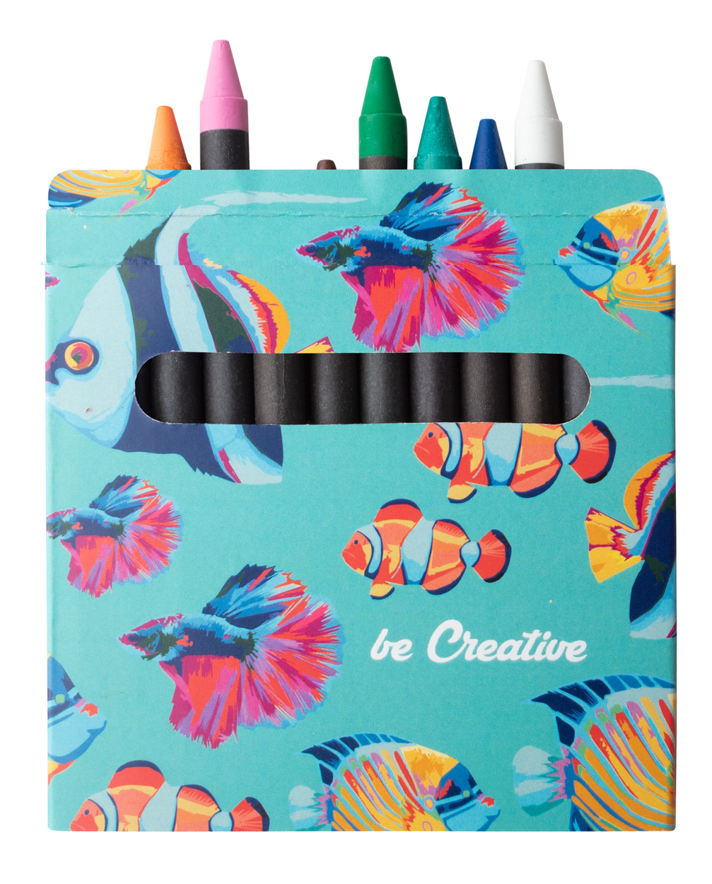 Wachsmalstifte (12 Stk.) in individueller Verpackung (CMYK). Der Preis ist inkl. Digitaldruck. Midestmenge: 100 Stk.