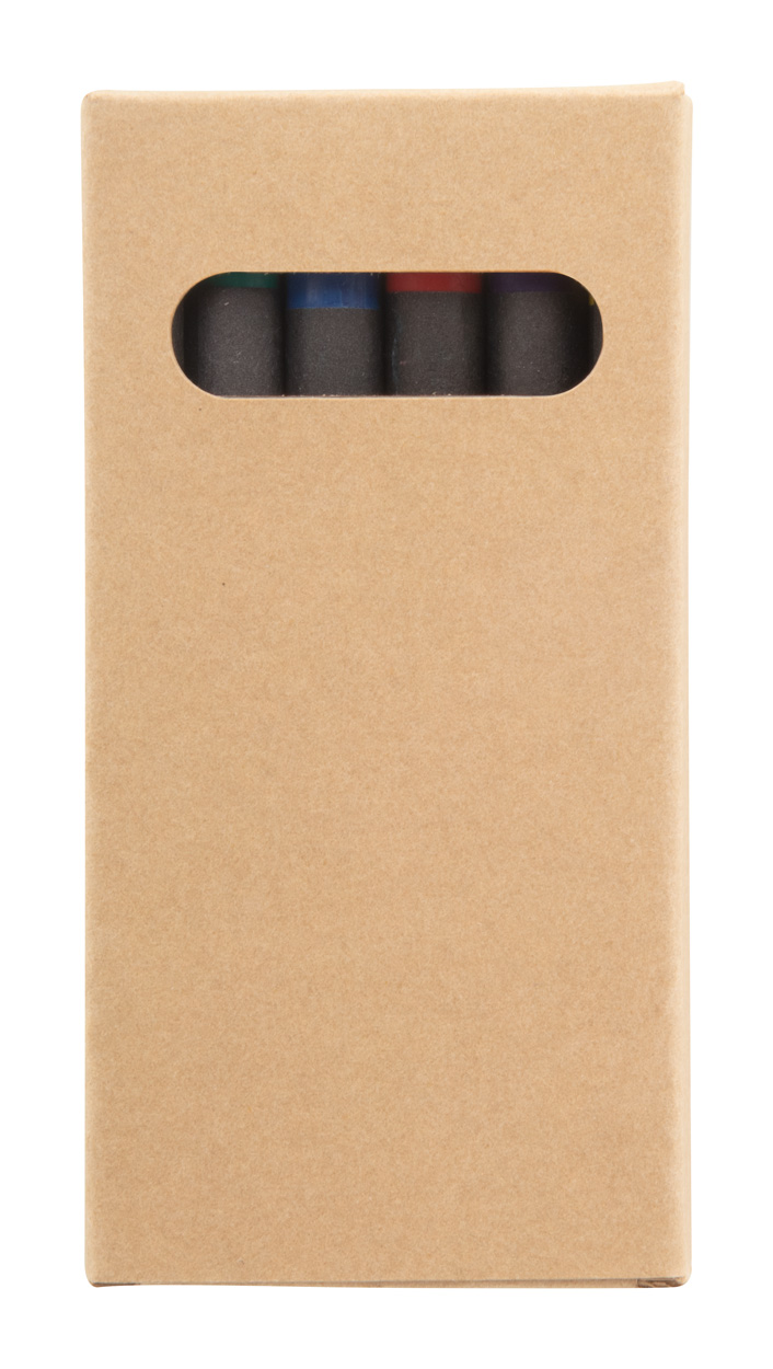Wachsmalstifte (6 Stk.) in vollfarbig bedruckter Kraftpapierbox. Der Preis ist inkl. Digitaldruck. Mindestmenge: 100 Stk.