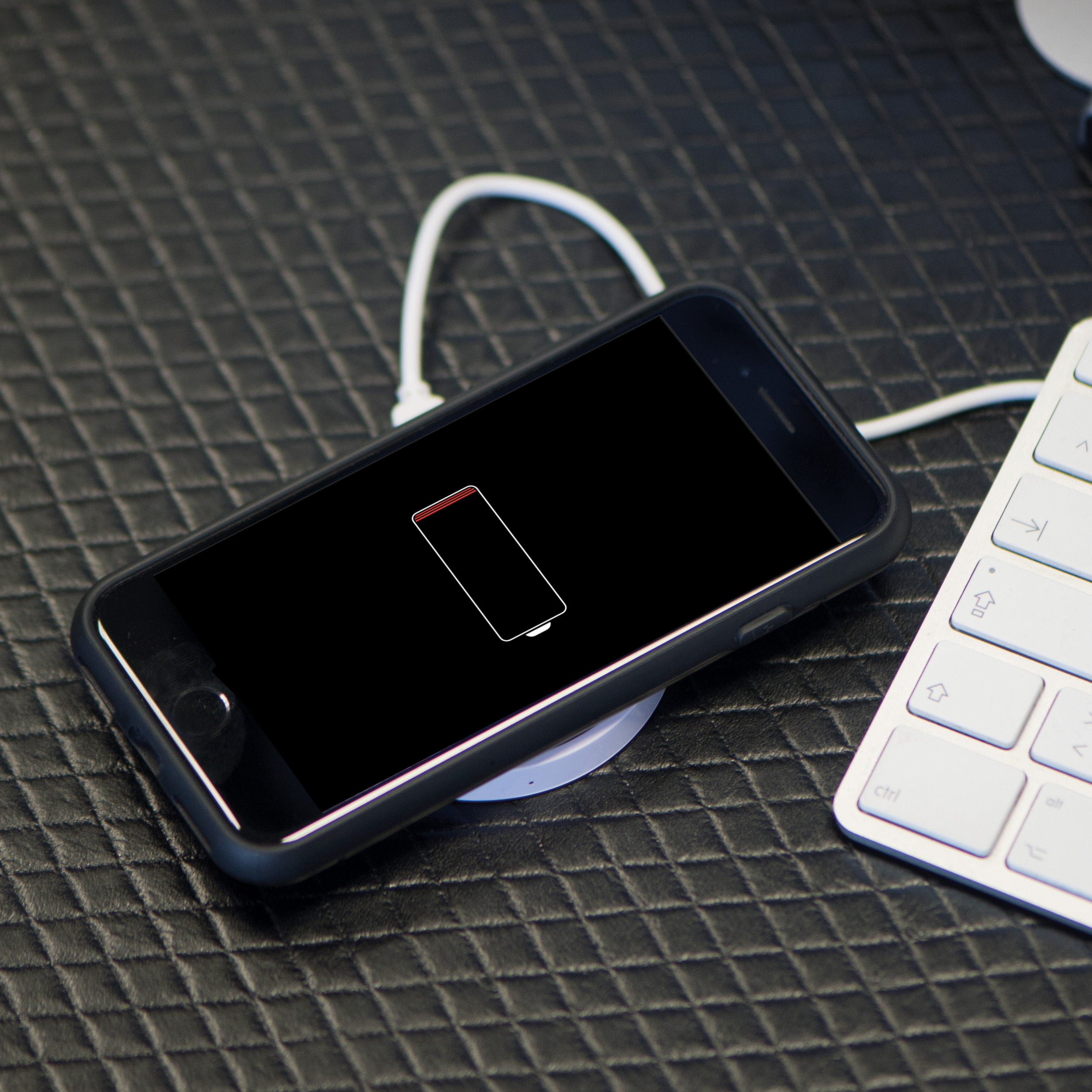 Der Wireless Charger lädt Ihr Smartphone ganz einfach ohne Kabelverbindung. Geeignet für alle QI-fähigen Smartphones. Legen Sie Ihr Smartphone einfach auf das Induktionsladegerät. Ihre Werbung drucken wir direkt auf das Ladegerät.