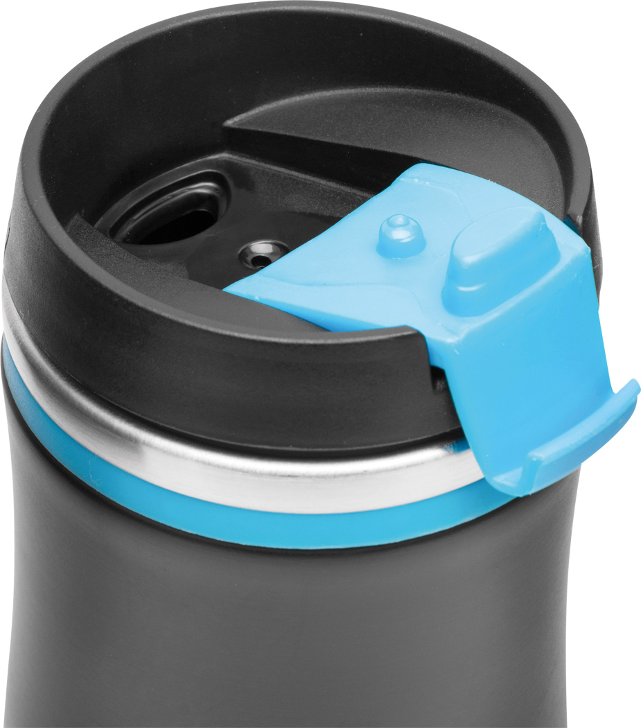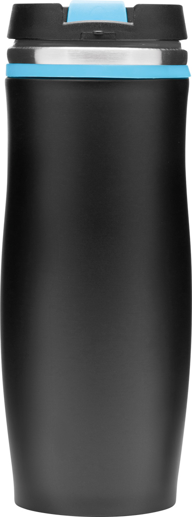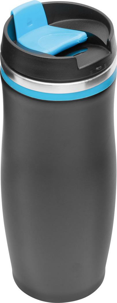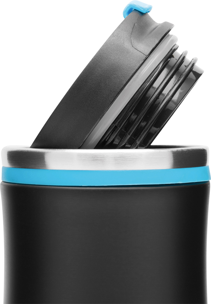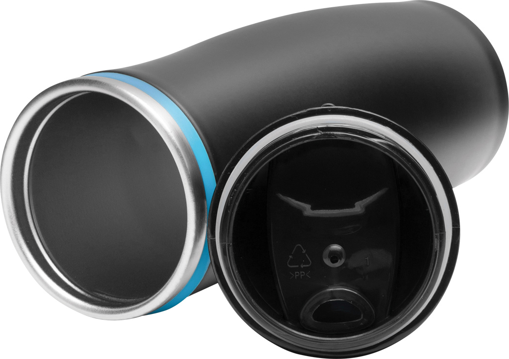 Isolierbecher DARK CREMA, doppelwandig: innen und außen aus Edelstahl, Kunststoff-Deckel mit sicherem Schraubverschluss und integrierter Trinköffnung zum Aufklappen, farbig-gummierte Manschette oben sowie gummierter Standfuß für gute Bodenhaftung, Füllmenge ca. 400 ml